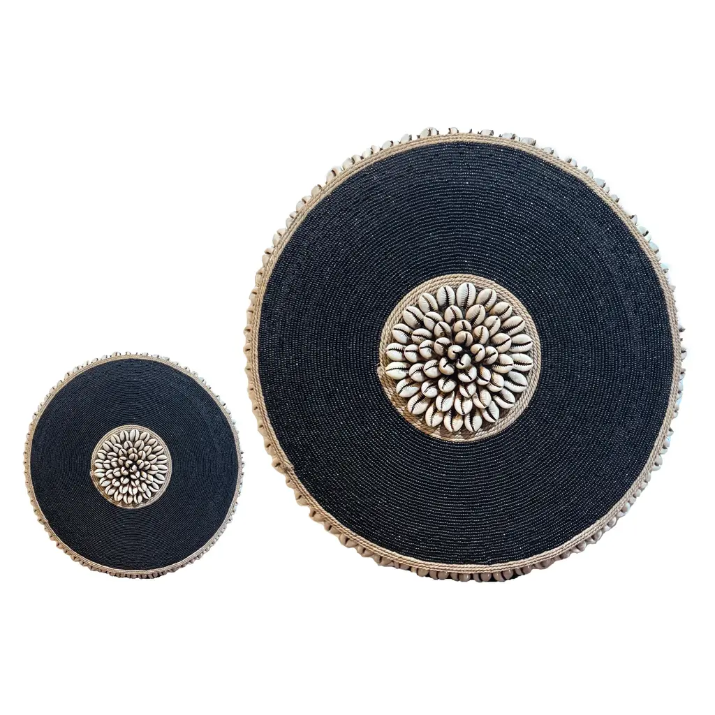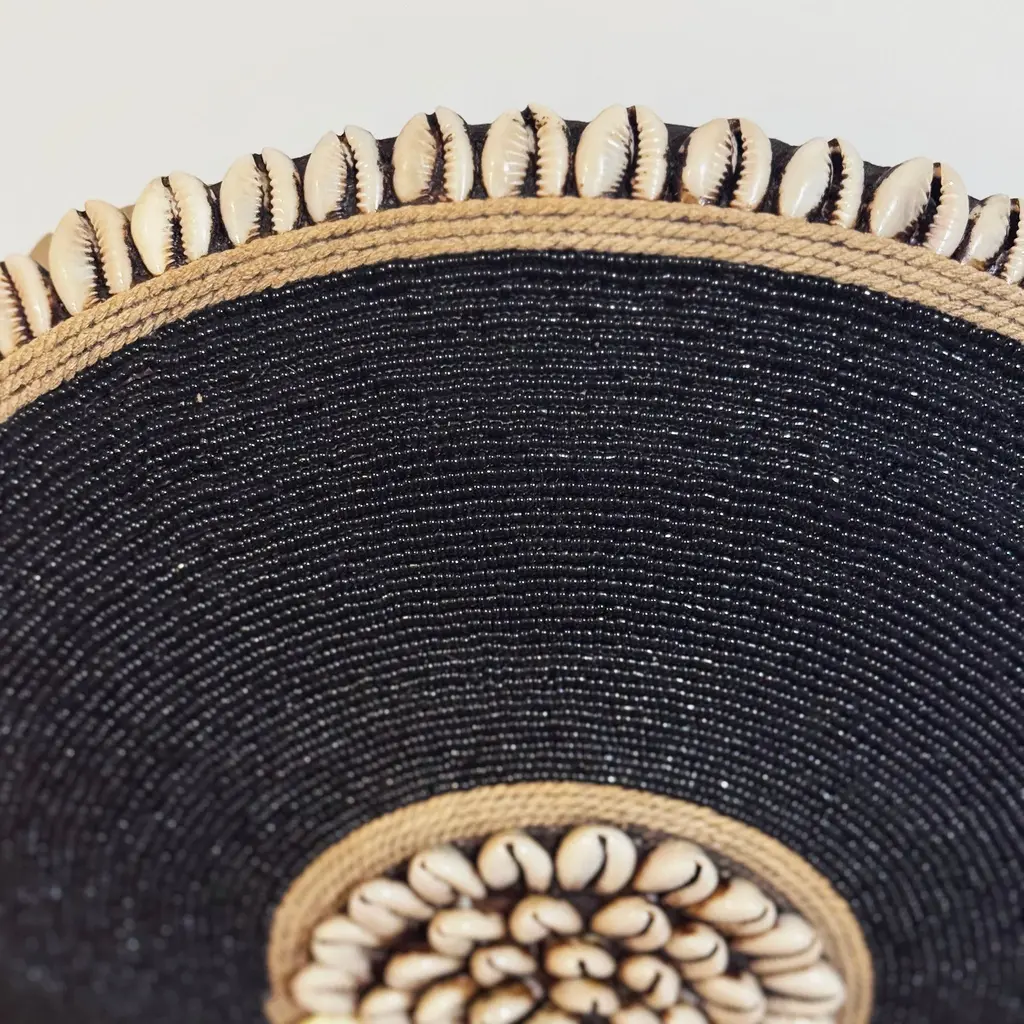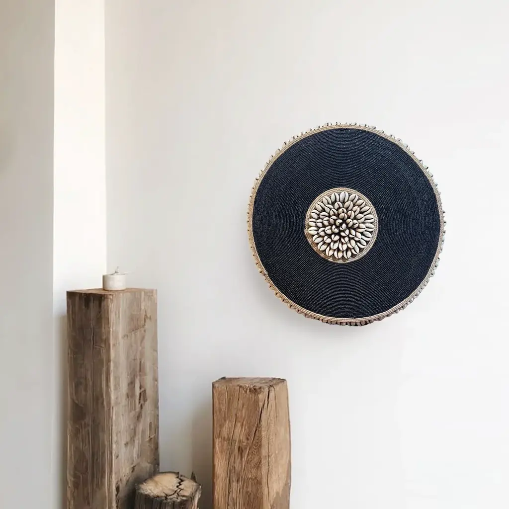 Enrich your living room with our Black Wall Sculpture, a unique wall art sculpture that embodies elegance and luxury. This handcrafted large wall art sculpture from Cameroon is reminiscent of African shields, symbolizing strength and unity. The wall art sculpture is available in small and large sizes and fits seamlessly into any living room, bedroom, or hallway., The deep black beadwork adds a dramatic focal point, while creating a sense of luxury and refinement in any space., The wall art sculpture has versatile appeal that complements modern, minimalist, and eclectic interiors. , Perfect for those who cherish craftsmanship and sophistication.
