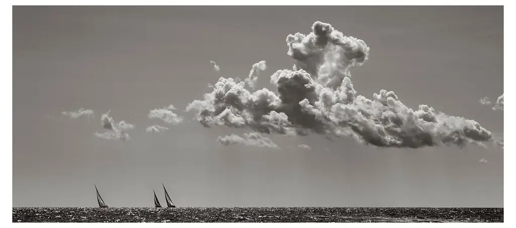A stark scene of blade-like sculptures standing forlornly on an amber beach, with a dark sea and a moody sky in the backdrop. Printed onto smooth plexiglass this artwork has a sleek, glossy finish and is part of our curated collaboration with Cobra Art.Download Specification Sheet