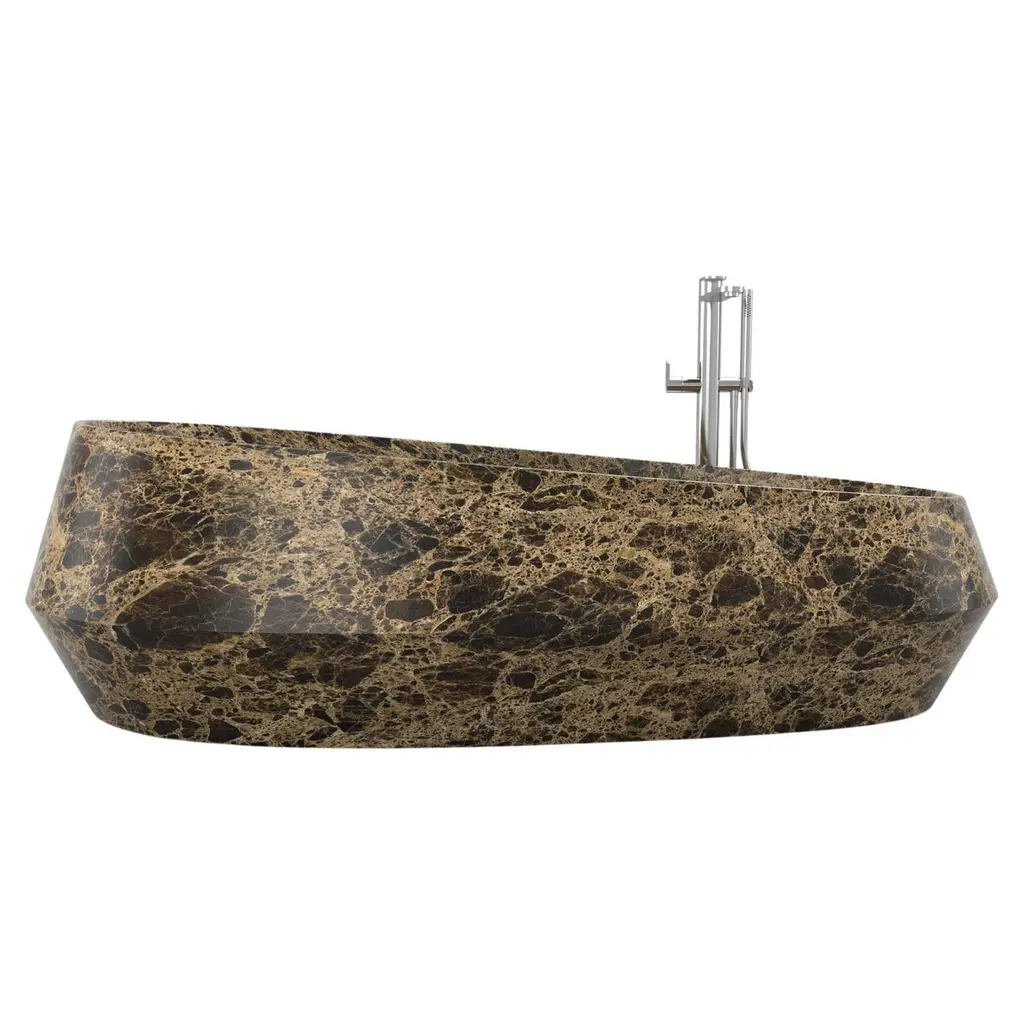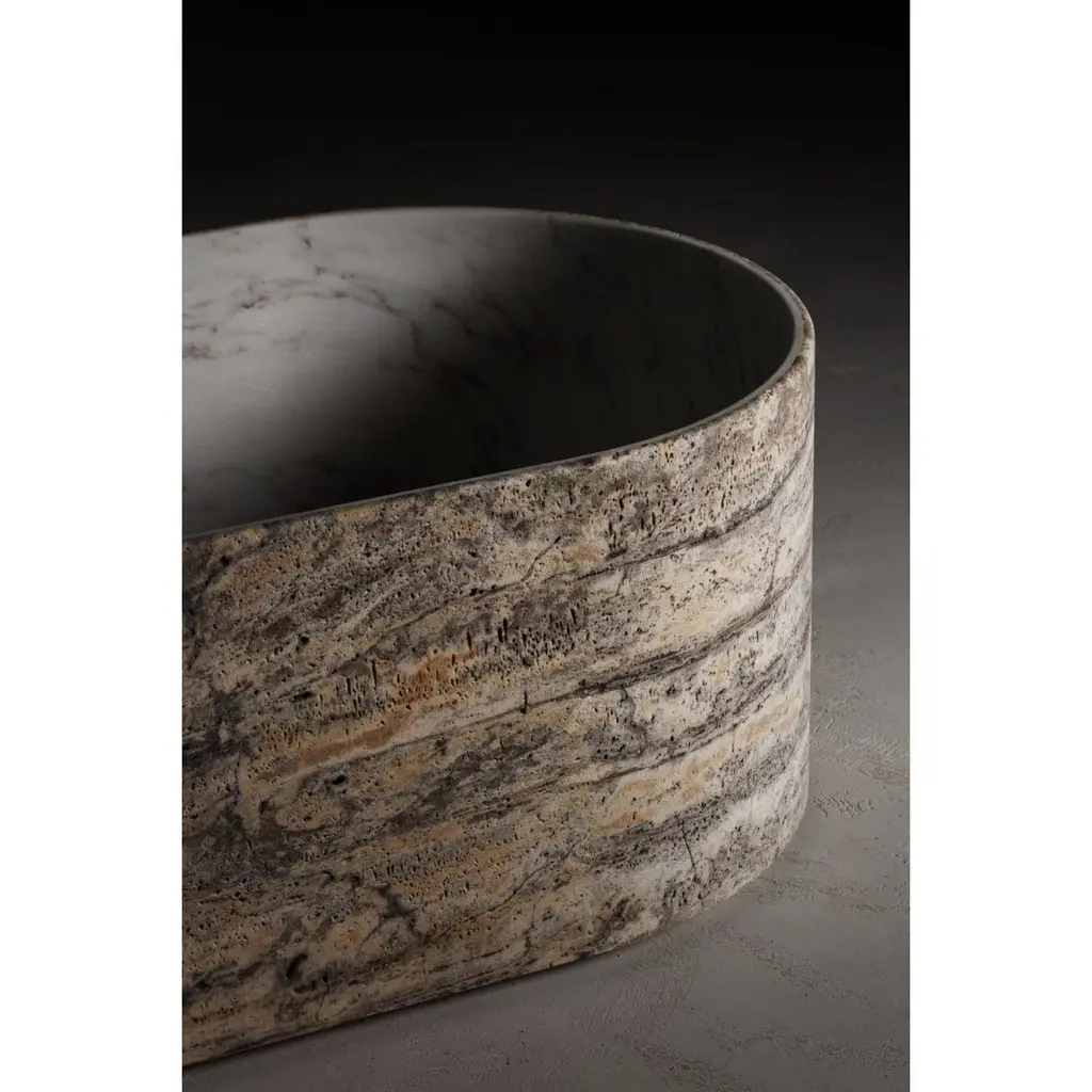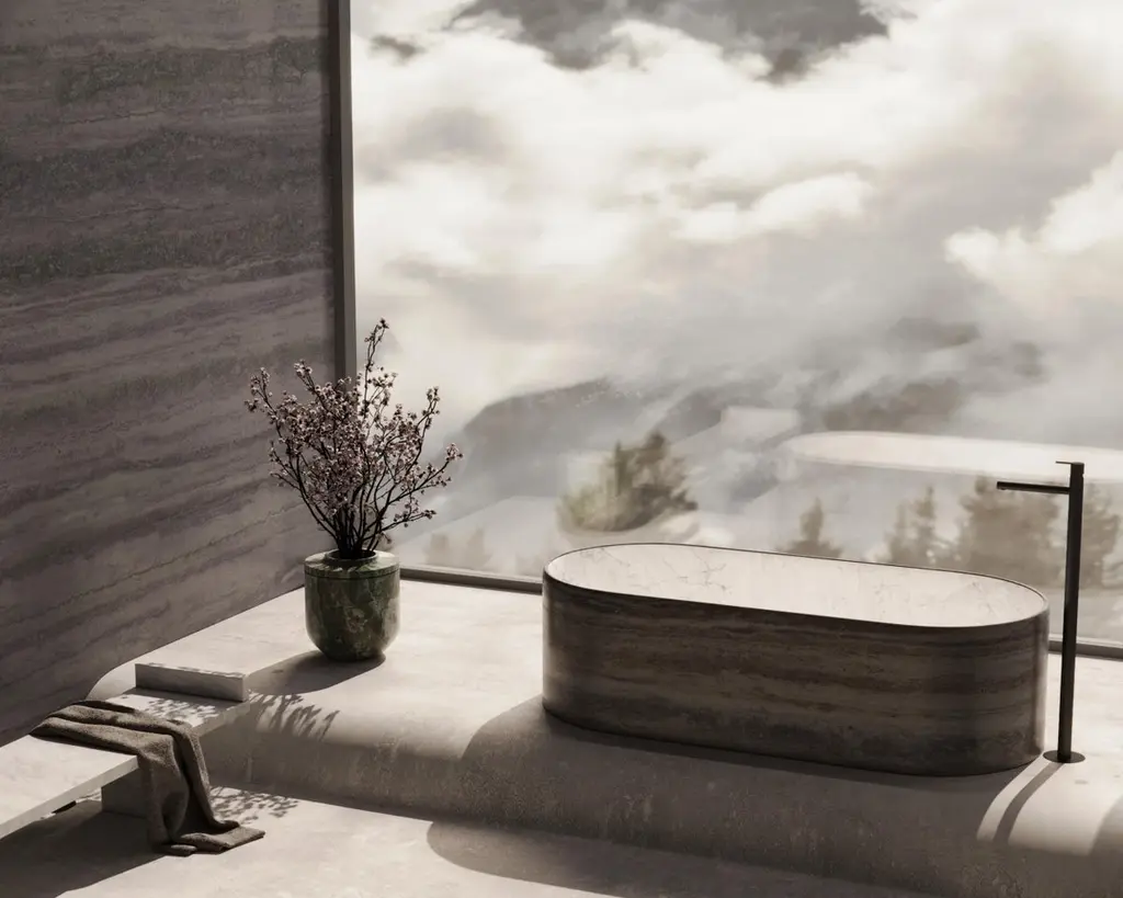 Blessed Tub Circle by Kreoo Designed by Christophe PilletDimensions: D 80 x W 180 x H 50.Materials: Travertino Silver and Bianco Del Re marble.Weight: 553 kg.Available in different marble and travertine options. Prices include a drain with a marble cover. For custom drain requests: technical details and price surcharge to be defined. Please contact us.The evolution of the Blessed collection maintains its aesthetic foundation unchanged. Now also available in a freestanding bathtub version, in elongated oval or rectangle, the range dedicated to the world of bathroom design by Christophe Pillet is characterized by the material contrast between the outer and inner surfaces, offered in two different types of marble. The result is an elegant antithesis, not only in color but also in the texture of the natural stone, with different veins and nuances meeting at the top edge, crafted to achieve a minimal and striking thickness. Bianco Carrara and Bianco del Re are the options dedicated to the internal silhouette of the tub, while the exterior can be customized in a wide range of marbles, travertines, and semi-precious stones.Kreoo: the new marble experienceKreoo links its name to the best Italian tradition in marble manufacturing and brings to new light the primordial charm of a material that has witnessed the evolution of civilizations and cultures.From the bathroom and living room to coverings, home accessories, and lamps, the company works with natural stone in various forms and aesthetic compositions, enriching it with other materials such as metals, wood, and glass. The result is a fascinating and chromatic language, suitable both indoors and outdoors. Expressed in contemporary but still customizable designs, Kreoo highlights workmanship know-how and excellence.The brand, born in 2010 by the experience of Decormarmi and its worldwide distribution strength, has led to major international projects, especially in hospitality and luxury residential.