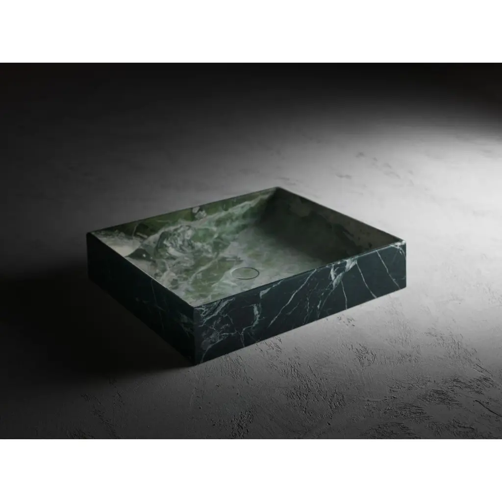 Blessed Tub Square by KreooDesigned by Christophe PilletDimensions: D 80 x W 180 x H 50.Materials: Nero Marquina marble and Bianco Del Re marble.Weight: 561 kg.Available in different marble and travertine options. Prices include a drain with a marble cover. For custom drain requests: technical details and price surcharge to be defined. Please contact us.The evolution of the Blessed collection maintains its aesthetic foundation unchanged. Now also available in a freestanding bathtub version, in elongated oval or rectangle, the range dedicated to the world of bathroom design by Christophe Pillet is characterized by the material contrast between the outer and inner surfaces, offered in two different types of marble. The result is an elegant antithesis, not only in color but also in the texture of the natural stone, with different veins and nuances meeting at the top edge, crafted to achieve a minimal and striking thickness. Bianco Carrara and Bianco del Re are the options dedicated to the internal silhouette of the tub, while the exterior can be customized in a wide range of marbles, travertines, and semi-precious stones.Kreoo: the new marble experienceKreoo links its name to the best Italian tradition in marble manufacturing and brings to new light the primordial charm of a material that has witnessed the evolution of civilizations and cultures.From the bathroom and living room to coverings, home accessories, and lamps, the company works with natural stone in various forms and aesthetic compositions, enriching it with other materials such as metals, wood, and glass. The result is a fascinating and chromatic language, suitable both indoors and outdoors. Expressed in contemporary but still customizable designs, Kreoo highlights workmanship know-how and excellence.The brand, born in 2010 by the experience of Decormarmi and its worldwide distribution strength, has led to major international projects, especially in hospitality and luxury residential.