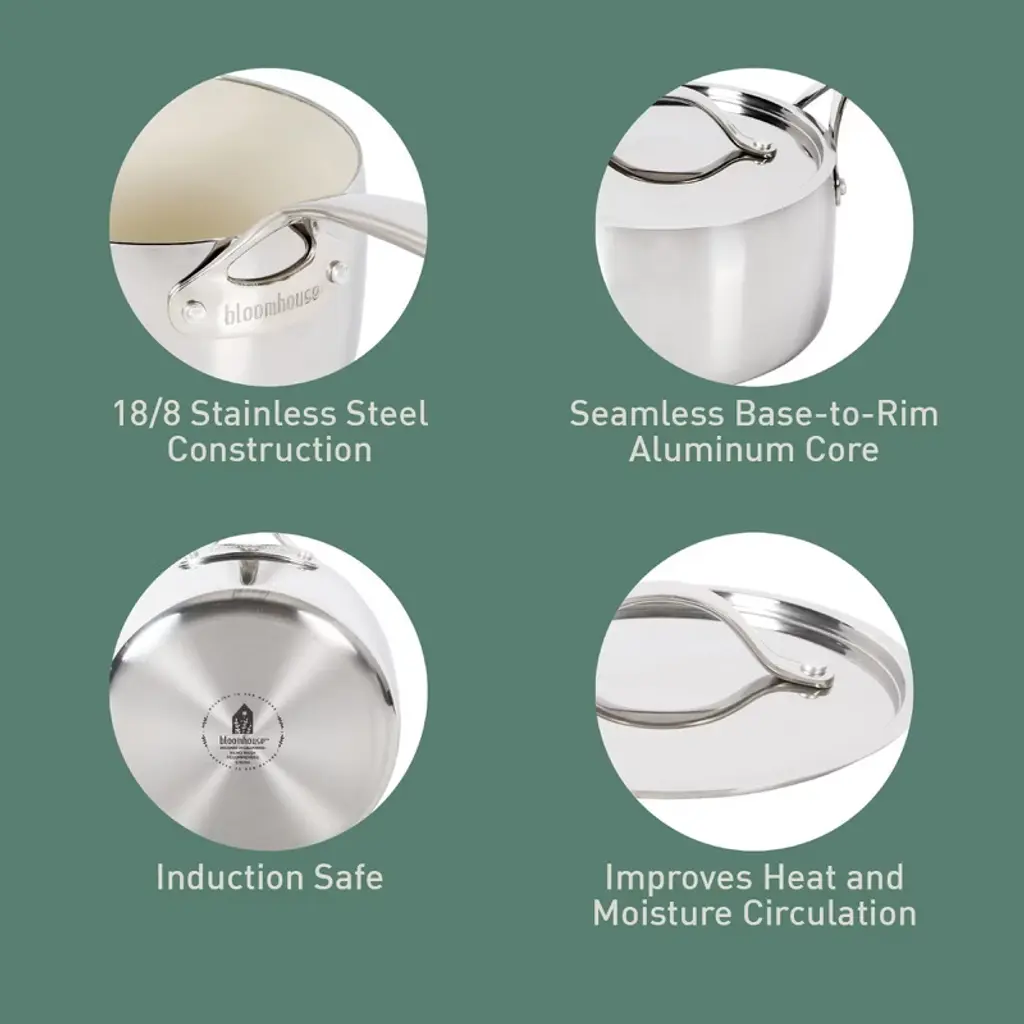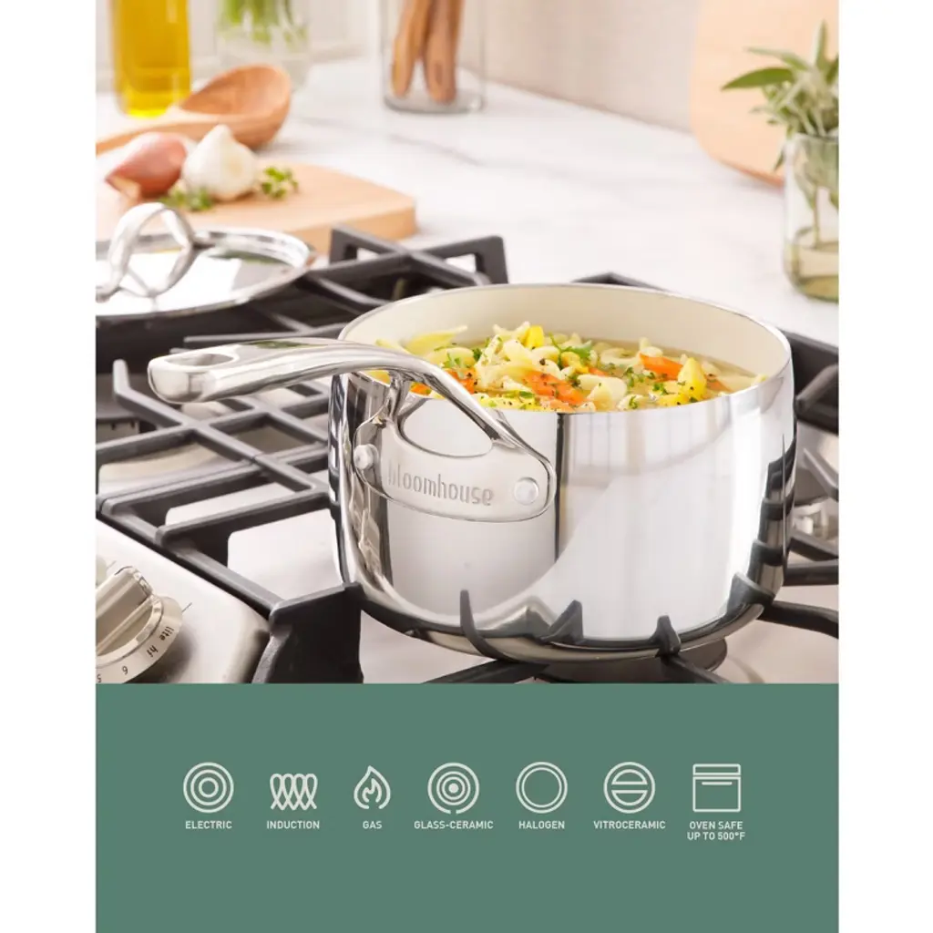 Bloomhouse 3-qt Triply Stainless Steel Sauce Pan W/ Non-stick Non-toxic Pro Ceramic Interior