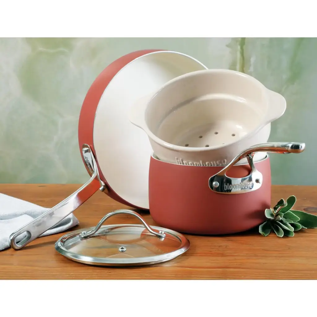 Bloomhouse 4-piece Aluminum Cookware Set W/non-stick Ceramic Steamer Insert- Terracotta Orange