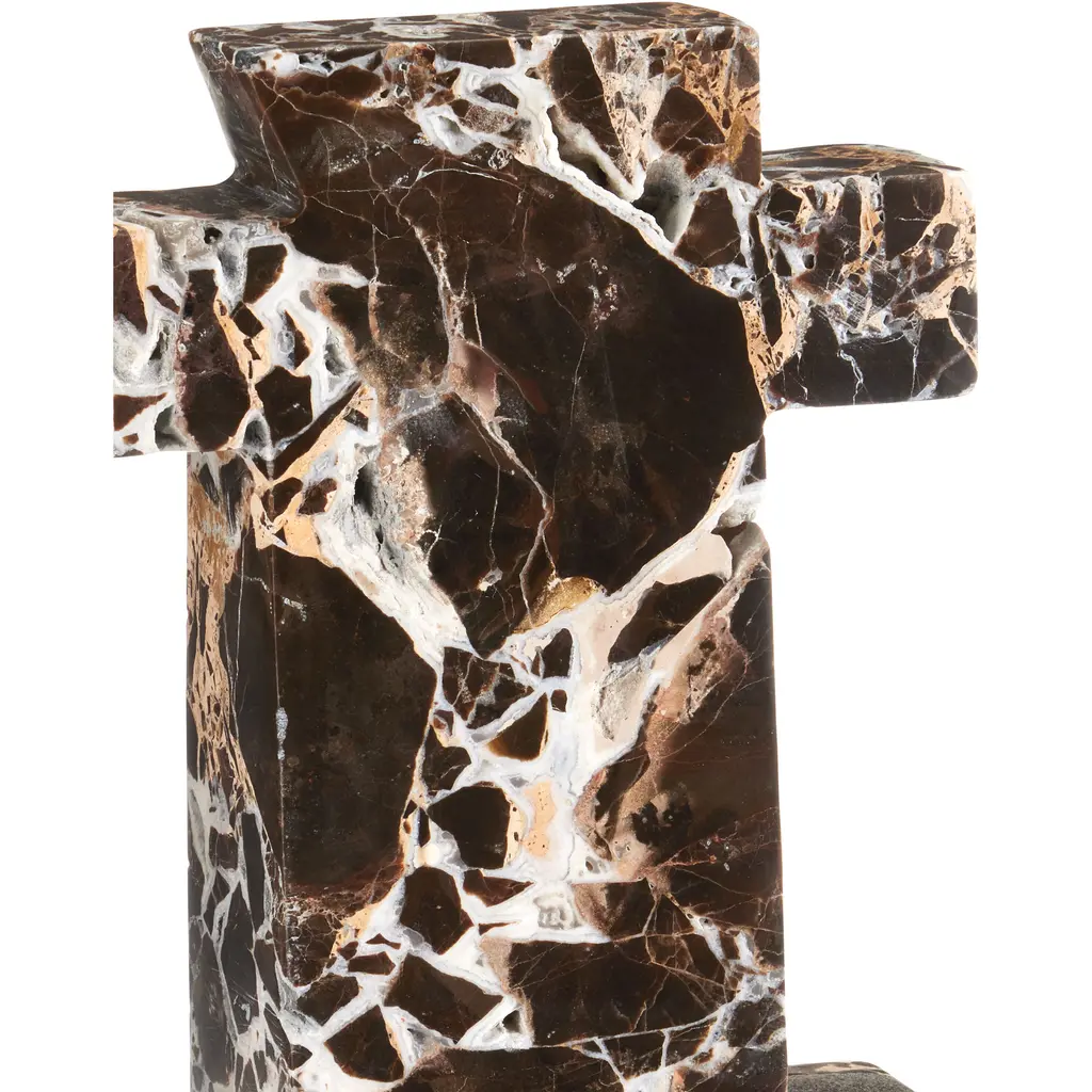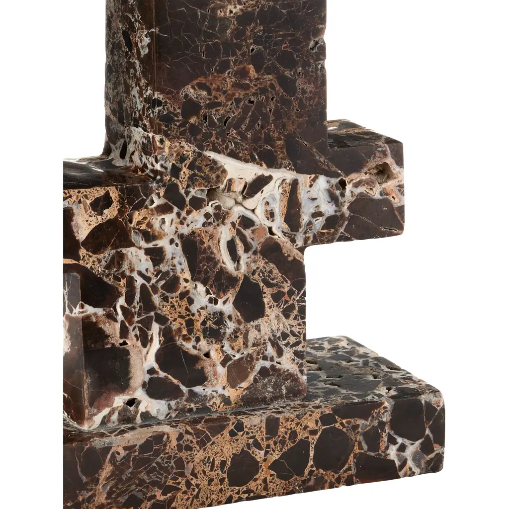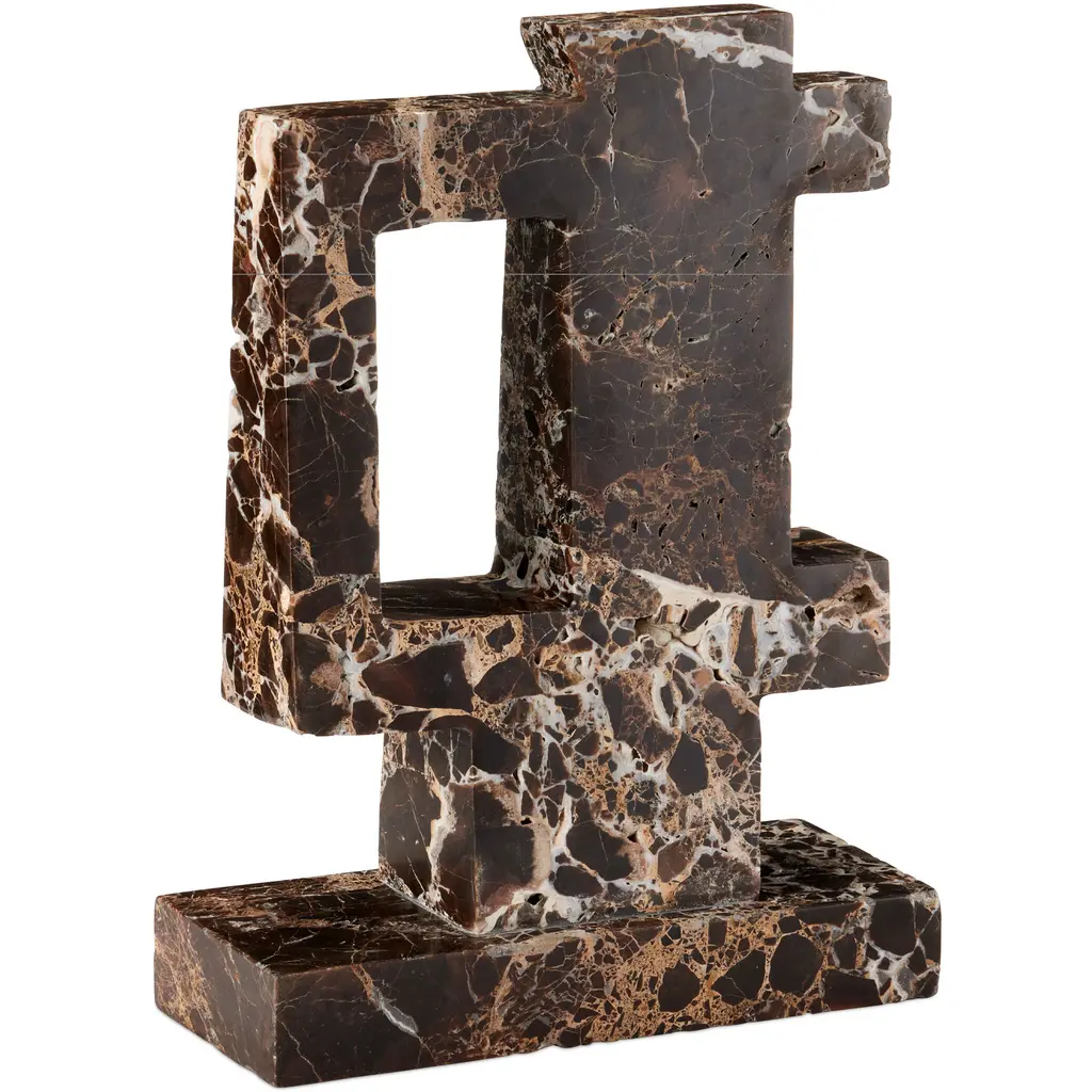The Blount Marble Object is a striking geometric sculpture crafted from Emperador stone, a luxurious marble known for its rich dark brown color and natural pitting. Bold veining runs throughout the piece, adding depth and visual interest to its intricate design. Perfect as a statement accent or a sophisticated addition to any display, this sculpture showcases the timeless elegance of natural stone.