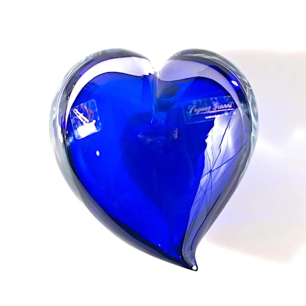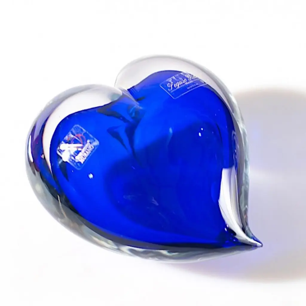 Wonderful blue heart-shaped sculpture in Murano glass. This stunning handcrafted work can be the ideal gift for the love of your life. The item bears the "Vetro Artistico® Murano" trademark which comes in the form of an adhesive sticker bearing the manufacturer's numerical code and the writing "Vetro Artistico® Murano" made of gold leaf. It is a mark of origin that certifies glass products made on the island of Murano in Venice. The Brand was established by law of the Italian State (Veneto Region lex. n. 70 of 12/23/1994) and is the only official guarantee of a glass product certainly made on the island of Murano. Labeled by Maker