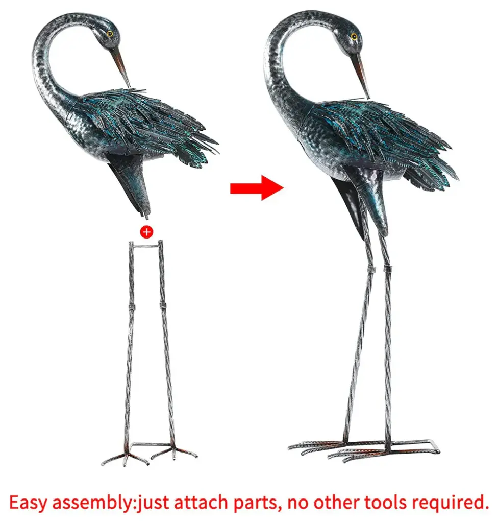 Features:Charming Design: these eye-catching garden crane statues are made of textured and layered metal sections, hand-painted blue finish, add a graceful and vivid touch to your outdoor space.Easy to Use: the Legs of crane statues knock-down for shipping, no tools required for assembly. Just put it anywhere you want, great accent for garden, yard, pond, patio and lawn. Or as a great gift for garden statue lover!Dimensions (standing): 13.4"�W x 7.1"�D x 30.7"�H; (preening): 13"�W x 7.5"�D x 28"�Hï¼›These exquisite pair of blue heron statue are sure to make a grand statement for you garden decorSteady Standing: thick legs and the design of U-shaped feet make sure it''s more stable, includes 4 U-shaped stakes in the package to stabilize crane''s feet in the ground.