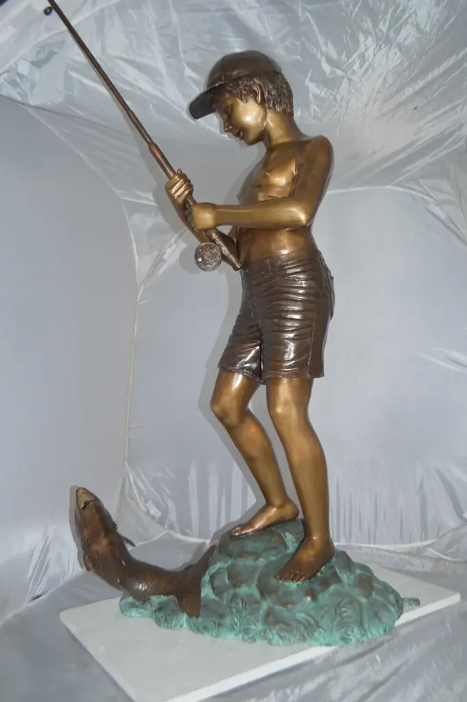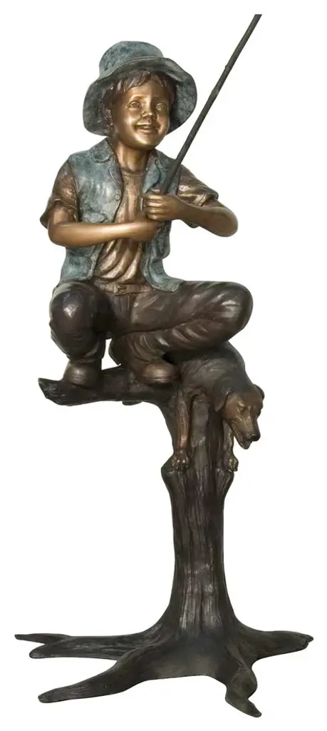 Those relaxing days of summer are captured in this sculpture of a "Boy Fishing from a Tree" sculpture. This is a great addition to your home.