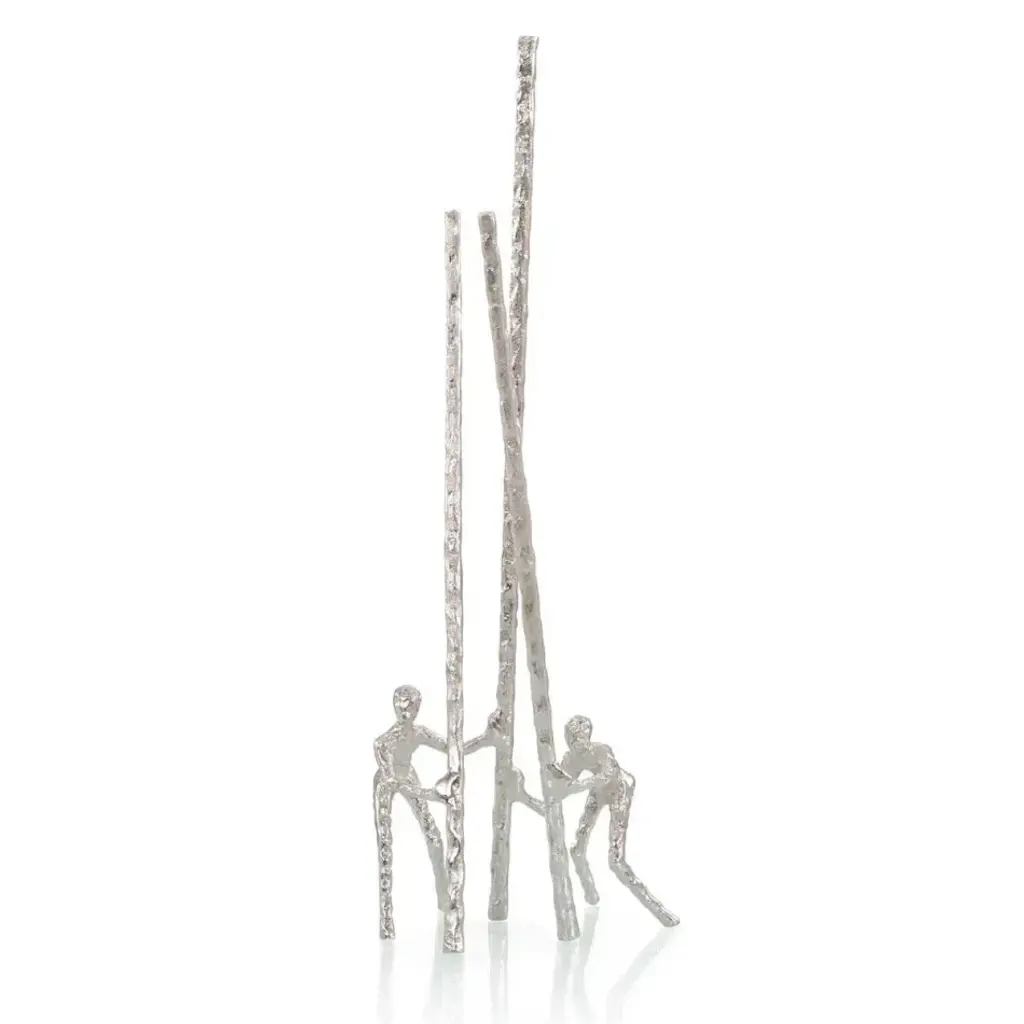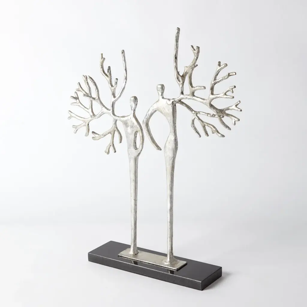 Man meets nature in this compelling sculpture. Made from cast iron with a silver leaf finish and a black marble base, this stunning sculpture can stand alone as a work of art or can double as a jewelry stand.