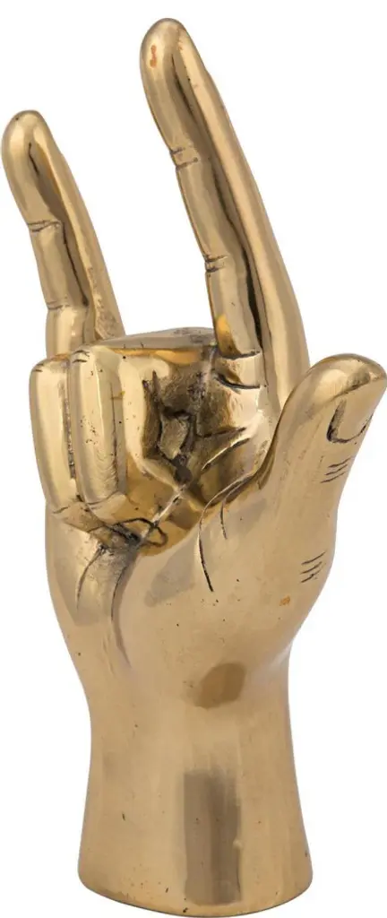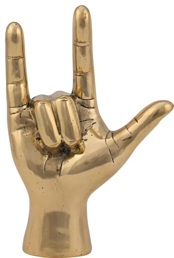 Celebrate the timeless beauty of love with our Brass Hand Sculpture, featuring the heartfelt message "I Love You." Crafted with precision, this traditional piece is cast from premium brass, offering a radiant glow that complements any decor style. Its sophisticated form captures the delicate nuances of a hand articulating love, crafted to leave a lasting impression on anyone who sees it. Measuring 9.50 inches in height, 6.50 inches in width, and 3 inches in depth, this sculpture is the perfect size to accentuate a bookshelf, mantel, or desk. The brass''s natural sheen enhances its traditional design, making it a versatile item suitable for a range of settings. Its durable material ensures it will remain a cherished keepsake for years to come. Perfect as a gift or as a heartfelt addition to your own decor, this brass hand sculpture speaks volumes without uttering a word. Its traditional style paired with a universal message of love makes it an unforgettable piece. Be it for a holiday, a special occasion, or just because, its charm and warmth make it an ideal choice. - Dimensions: 9.50H 6.50W 3D - Condition: New - Material: Brass - Color: Brass - Object: Hand Sculpture with "I Love You"
