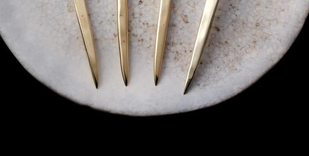 The ultimate martini experience with this exquisite set of four brass high-polish martini picks, crafted by the skilled hands of Heath Wagoner at HW. Studio in the heart of Brooklyn, NY. Each pick is a masterpiece of sculpture, casting, forging, and hand-finishing, meticulously crafted to perfection.Immerse yourself in the sheer elegance of these martini picks as you relish your favorite cocktail. The dazzling high-polish finish radiates a sophisticated gleam, capturing the essence of luxury and refinement. Every detail is flawlessly executed, from the beautifully sculpted handles to the expertly cast and forged tips.Add a touch of class to your barware collection with these exclusive martini picks, handcrafted by one of the finest artisans in the industry. Perfect for entertaining guests or a private evening at home, this set is guaranteed to elevate your cocktail experience to new heights. Don't settle for anything less than the best, indulge in the exquisite craftsmanship of Heath Wagoner's HW. Studio martini picks.