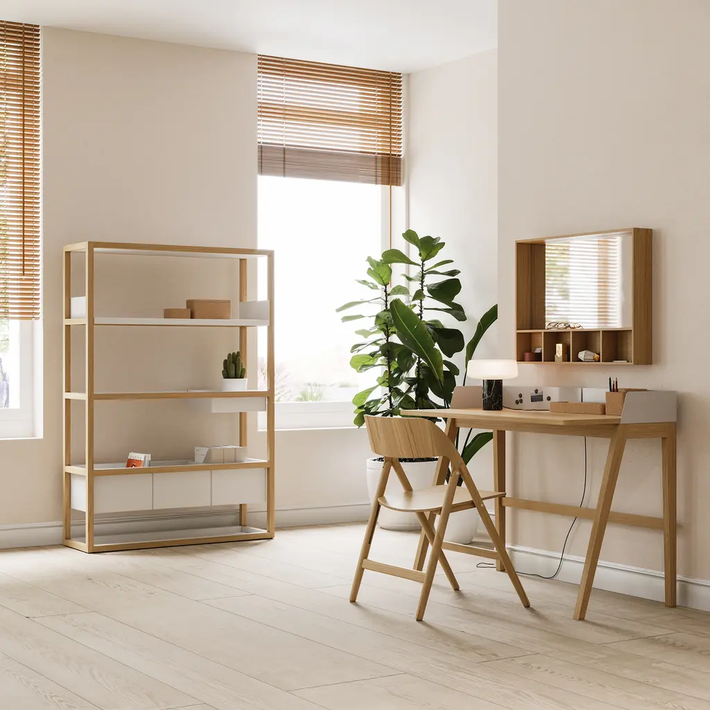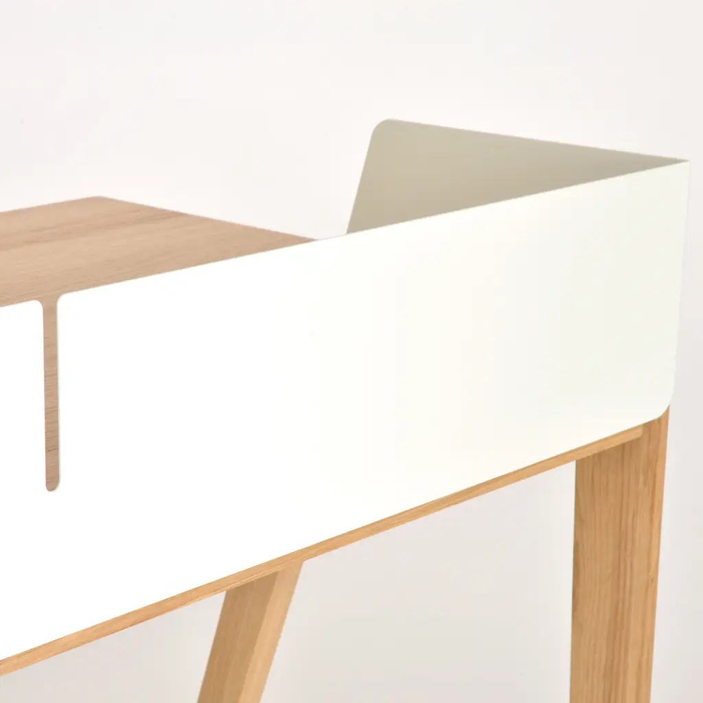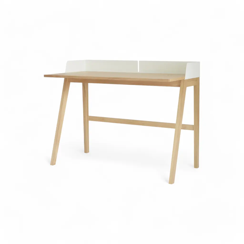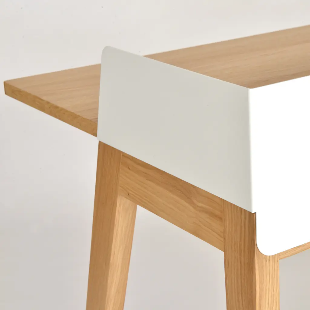 Work, create, plan, and play at a minimalist oak desk that will make your home look even more beautiful. Designed by Matthew Hilton for Case Furniture, the Brockwell Desk maximizes both style and function. The elegant design pairs a slim but sturdy solid wood frame with a robust steel back. Compact and easy to bring into smaller rooms, the desk can also double as a vanity table. The back features an opening for cable management so you can easily keep the top clutter-free, while the slender frame provides ample leg room for extra comfort. Crafted from quality materials, this minimalist oak desk is built to last; it features a solid oak frame, a veneered oak top, and a powder-coated steel back. Thanks to its elegant and simple design, the Case Furniture Brockwell Desk looks gorgeous in any décor, from more classic to contemporary.