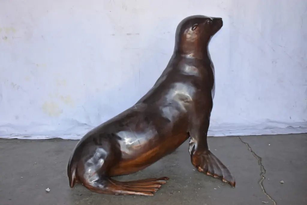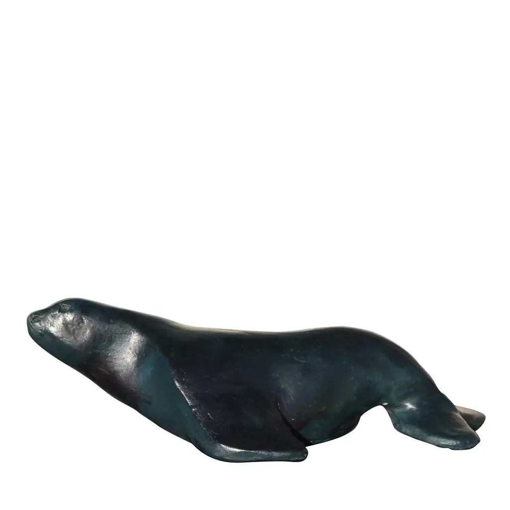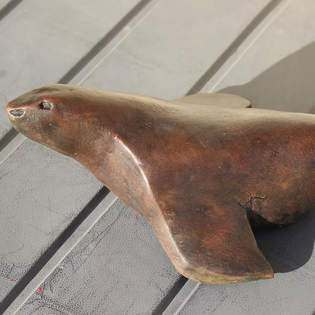 Both imposing and delicate, this life-like profile of a seal with smooth volumes and a striking bronze finish is crafted entirely by Daniele Nannini as part of a series of elegant animal sculptures. The piece is made of white clay that is hollowed out to obtain a thickness of 1 cm and subsequently sanded down to highlight its natural curves and volumes. After a firing in the kiln, the artist finished the piece with a coat of black tempera and a glossy finish using colored wax.
