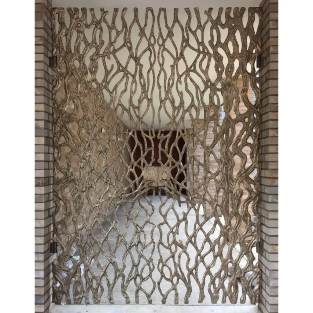 Bronze Gates by Mary BroggerUnique piece.Dimensions: W 183 x H 259 cm.Materials: Bronze.Custom sizes and finishes available. Electronic system fitting available.Mary Brogger is an internationally recognized artist whose diverse practice includes sculpture and site-responsive installation, as well as art direction, prop making, fashion, furniture, and light fixture design. Brogger's knowledge of the history of art and design, along with her refined and accomplished use of materials, provide the visual richness, technical agility, and conceptual cohesion that characterize her practice. Until relocating her studio to Los Angeles in 2009, Brogger served as an instructor in the Sculpture and the Fiber and Materials Studies Departments at the School of the Art Institute of Chicago. She is a recipient of distinguished awards from the National Endowment for the Arts and the Illinois Arts Council and has been nominated for awards and fellowships from the Richard H. Driehaus Foundation, the Louis Comfort Tiffany Foundation, and Anonymous Was a Woman. Brogger's work has been exhibited internationally and is held in many distinguished private and public collections including the Museum of Contemporary Art, Chicago.