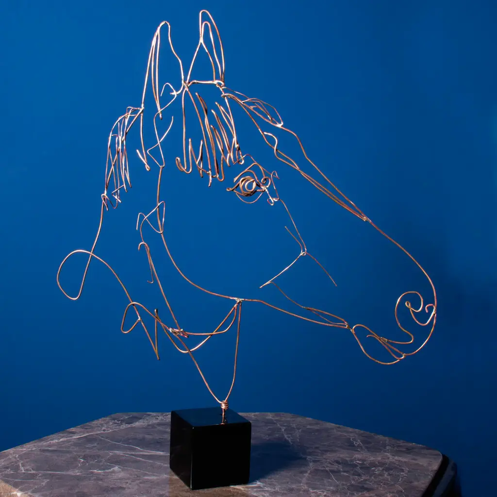 An exceptional gift idea for an animal lover, this statuette can be customized with a portrait of one's own horse. Resting on a polished black cubed base, it is minutely handmade of bronze wire, enhancing its inventive and contemporary style. Other 69 dog breeds available, please contact the Concierge for more information and customization options.