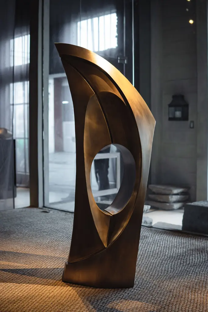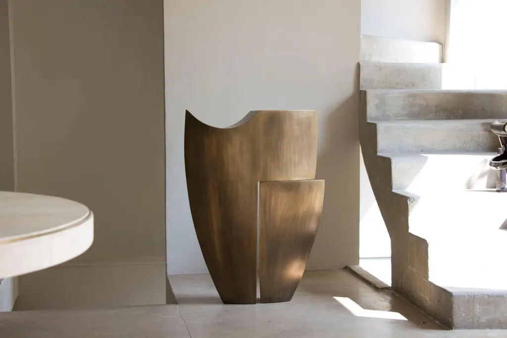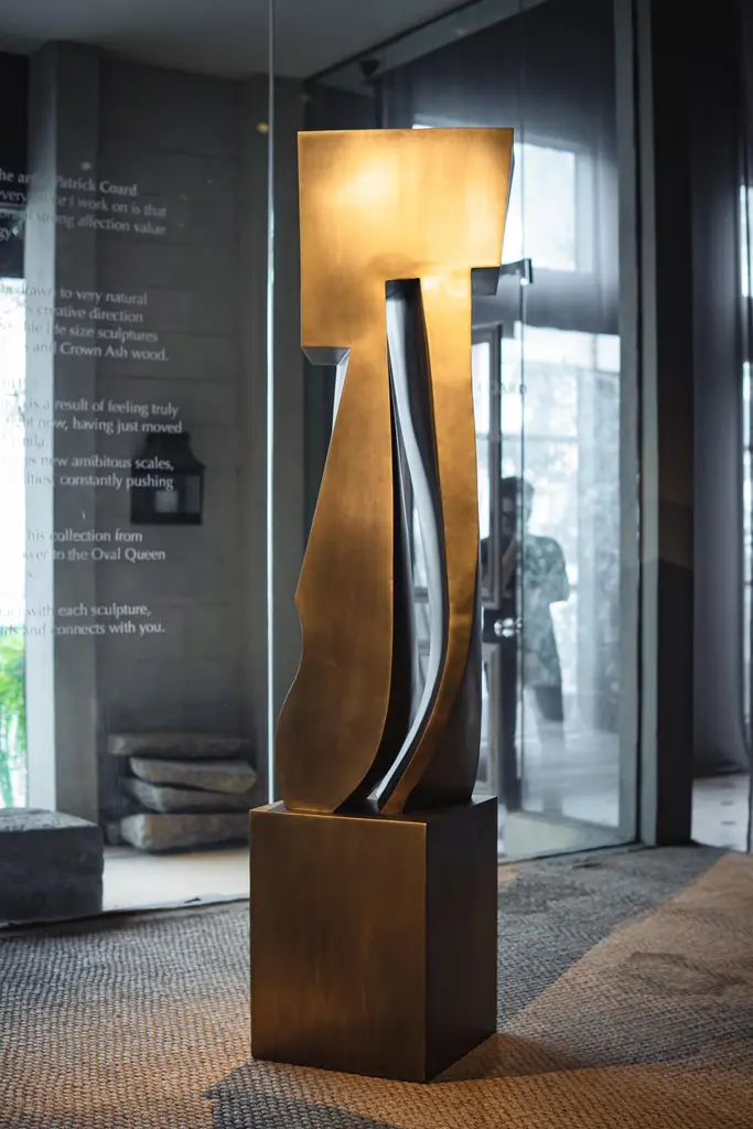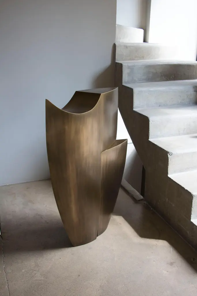 The Paris based label has distinguished themselves since their launch, with their iconic use of shagreen mixed with brass and other exotic materials. All furniture is handcrafted by skilled artisans, ultimately making each piece unique, designed in Paris and produced in the Philippines.Patrick Coard Paris expands on his unique and beautiful sculptural object collection. The Embrace is a powerful sculpture representing a sense of family, strength and sense of whole. The piece is entirely handcrafted in bronze-patina brass. See images at end of slide for more of his incredible sculptures.The dimensions of this piece are 58 x 31.9 x 145 cmAll Patrick Coard Paris pieces are handmade by artisans, ultimately making each piece unique. Wipe clean with soft dry cloth.Patrick Coard Paris - an Irish/Scandinavian designer, threw the gauntlet down with an awe inspiring collection of candles never seen before. Whilst the market has been saturated with scented candles he went back to basics of non-scented candles. He used his love of this aesthetic to be the first to bring out a collection of candles in shagreen and exotic skin textures, in beautifully hand carved patterns and sculptural shapes with metal inserts. His inspirations from sculptors from the 1930s and 1940s has created a modern collection in which one can utterly relax.Color variants may occur, but this showcases the Parisian label's commitment to creating authentic luxurious products using natural components.
