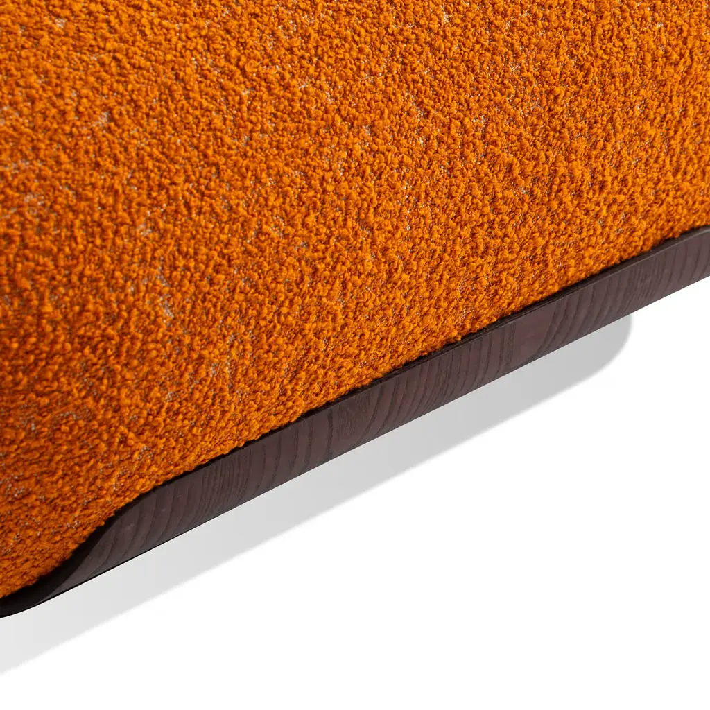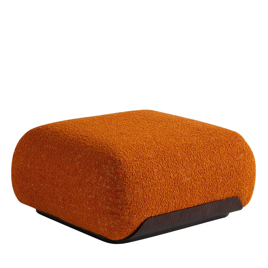 Elevate modern living spaces with the Bubble Orange Pouf, a striking piece that combines aesthetics and versatility. Inspired by the soft, rounded lines of the Seventies, this pouf serves as a central element within the Bubble upholstery collection. Designed for flexibility, the Bubble Pouf can be utilized as a standalone item or harmoniously integrated into various configurations, accommodating corner sofas, chaise longues, or complementary chairs. Its sculptural form enhances any room, seamlessly transitioning between casual and sophisticated settings. Constructed from a single modular padded volume, the pouf features a robust EPA certified plywood structure, ensuring durability while maintaining comfort. The elastic strap springing system, layered with open-cell polyurethane and Dacron, provides a supportive yet plush seating experience. For additional elegance, the base is crafted from curved ash-veneered beech wood. The Bubble Orange Pouf comes with an array of customizable finishes, contact the Concierge for more details.