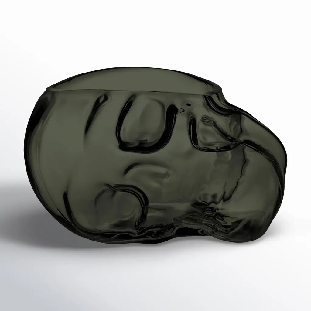 Handcrafted blown glass sculpture-object with ever-changing irregular shapes. It features a decoration consisting of a transparent mass and a colored mass that blend together.It is available in two colors: black-amethyst and black-blue.