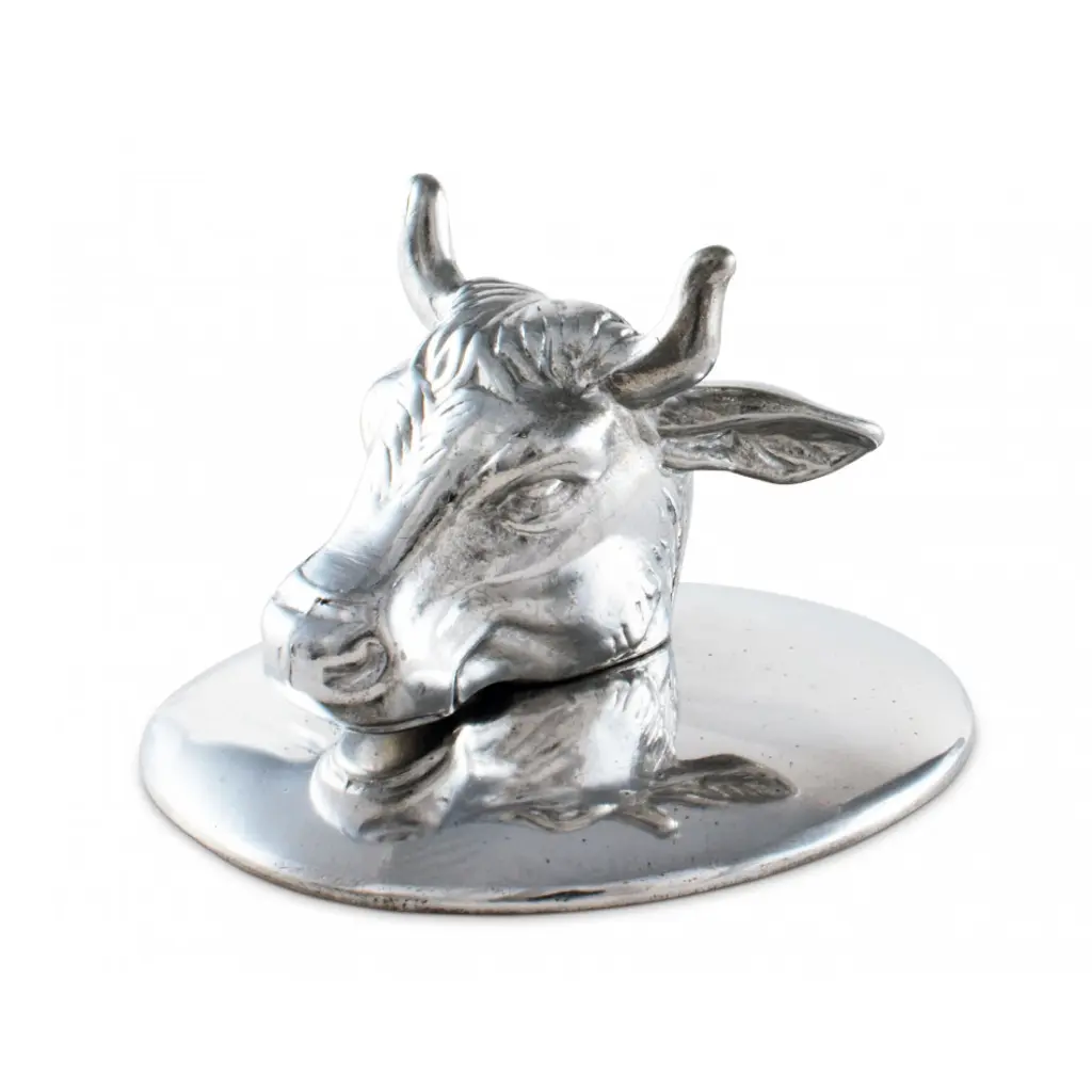 A dignified and detailed bust of a rodeo Bull acts as the finial / handle on this hand-crafted, handsome, western ranch theme napkin weight. Anchored by a 3.5-inch aluminum disk to provide ample cover and weight to keep a stack of napkins orderly even when enjoying a breezy al fresco gathering. Please Note: Napkin Box sold separately