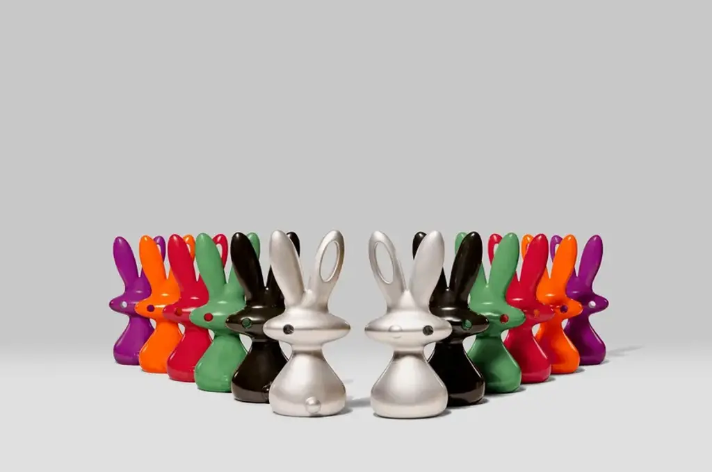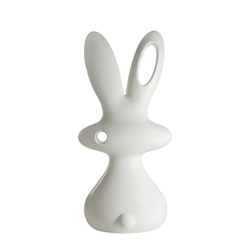 Cosmo Bunny is an artistic object ideal for both contemporary indoor environments and outdoor gardens. Its cute and eccentric appearance recalls at the same time references to the rabbit of Alice in Wonderland, Greek mythology and, of course, our childhood memories. Cosmo Bunny is the perfect match between childlike innocence and powerful artistic message.Cosmo Bunny was born in 2008 from the encounter between the Japanese artist Aki Kuroda and Giò Colonna Romano, founder of SLIDE, as part of the SLIDE Art project, in which the combination of art and design reaches its climax in terms of creativity and research.The artwork, produced in limited numbers, became a design object in January 2023, coinciding with the advent of the Chinese Year of the Rabbit.It was thanks to Yoyo Maeght, who fell in love with the sculpture and decided to participate in the project, that Cosmo Bunny became what it is now.Yoyo Maeght is at the same time gallery owner, publisher, curator, judge, teacher and author of books including the best seller La Saga Maeght. Yoyo Maeght conceives exhibitions which she curates, selects works, designs as well as the editorial follow-up of catalogues. She is involved in communication and promotion, by bringing together sponsors, partners and media around her projects. Her grandfather, Aimé Maeght, creator of the Maeght Foundation, bequeathed her his audacity, his determination and his passion for all forms of art. She was administrator of the Maeght Foundation, the Maeght Gallery and CEO of Maeght Éditeur. Her passion for modern and contemporary art, her expertise and her desire to promote culture have led her to organize exhibitions for museums and art centres, both in France and abroad. She is also a company director in the cultural and artistic field, between the public and private sector.“Be it for its charismatic strength, its bright colours or its friendly appearance, Cosmo Bunny was selected to be exhibited by Yoyo Maeght.The Salone del Mobile.Milan in April was also an important stage for Cosmo Bunny, which stood out among SLIDE's new proposals for its pop soul and irreverence. Last but not least, in May this rabbit-shaped object was presented in the park of the Château de Chantilly on the occasion of the Journée des Plantes, by Yoyo Maeght. Finally, an official presentation during the last Paris Design Week was made at See Galerie in September 2023.Aki Kuroda, the designer of Cosmo Bunny, took part in this presentation. Born in Kyoto in 1944, Kuroda started painting since he was 3 years old. When he was a child, he was fascinated by the surrealist magazine “Minotaure” that his father received from Paris. He exhibited for the first time when he was 10 years old. Since then Aki Kuroda freely develops his artistic research in painting, photography, sculpture, architecture, set design, installation, performance or happening. Cosmo Bunny could be made in 100% recyclable polyethylene, with the technology of rotational moulding, and it is presented also in Stardust finishing, a special mix of 100% recycled black polyethylene, derived from old products, adding gold glitter, for a more sparkling and dreamy effect.Material: 100% recyclable polyethyleneColours: standard polyethylene colours, lacquered colours, Stardurst finishingProduction technology: rotational moulding