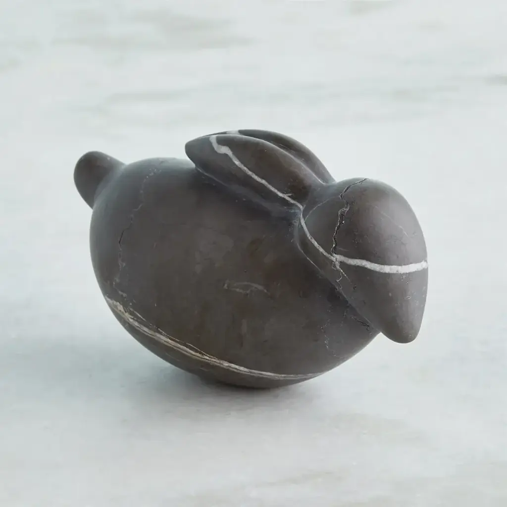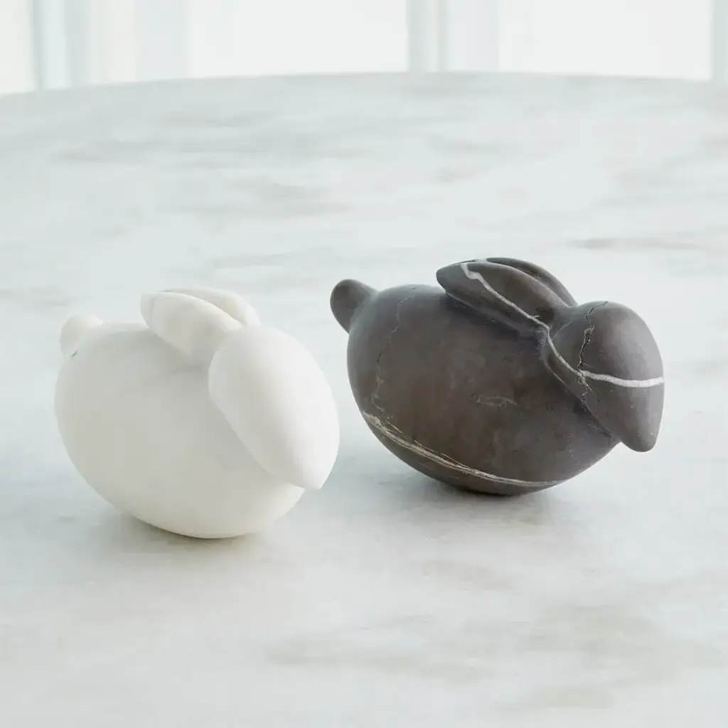 The Bunny sculpture is constructed of hand carved grey marble. As marble is a natural product, please be aware that there will always be variations in veining and color. This is to be expected and makes every marble product uniquely your own. From a fashion forward perspective, Global Views offers accessories, furniture, statement lighting, and an assortment of rugs and mirrors to add beauty and joy to your home.