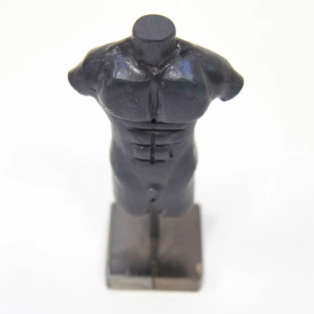 A tireless molding and chiseling process carried out by Lorenzo Quadalti is behind this singular anthropomorphic sculpture. Despite its small dimensions, it took an extraordinary manual effort and expertise to craft and smooth from a single iron block, a crafting process fueled by the pursuit of perfection which echoes the ancient Greek inspiration and ethos of physical and mental perfection.