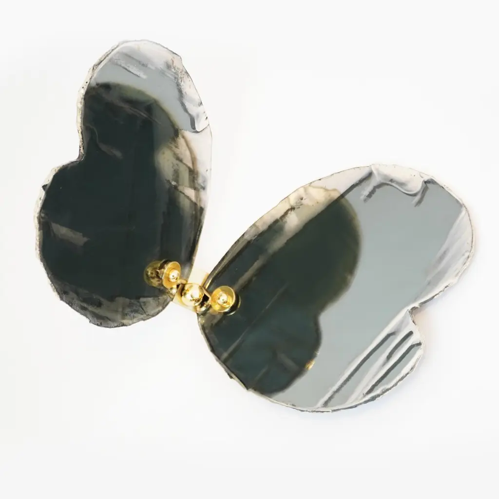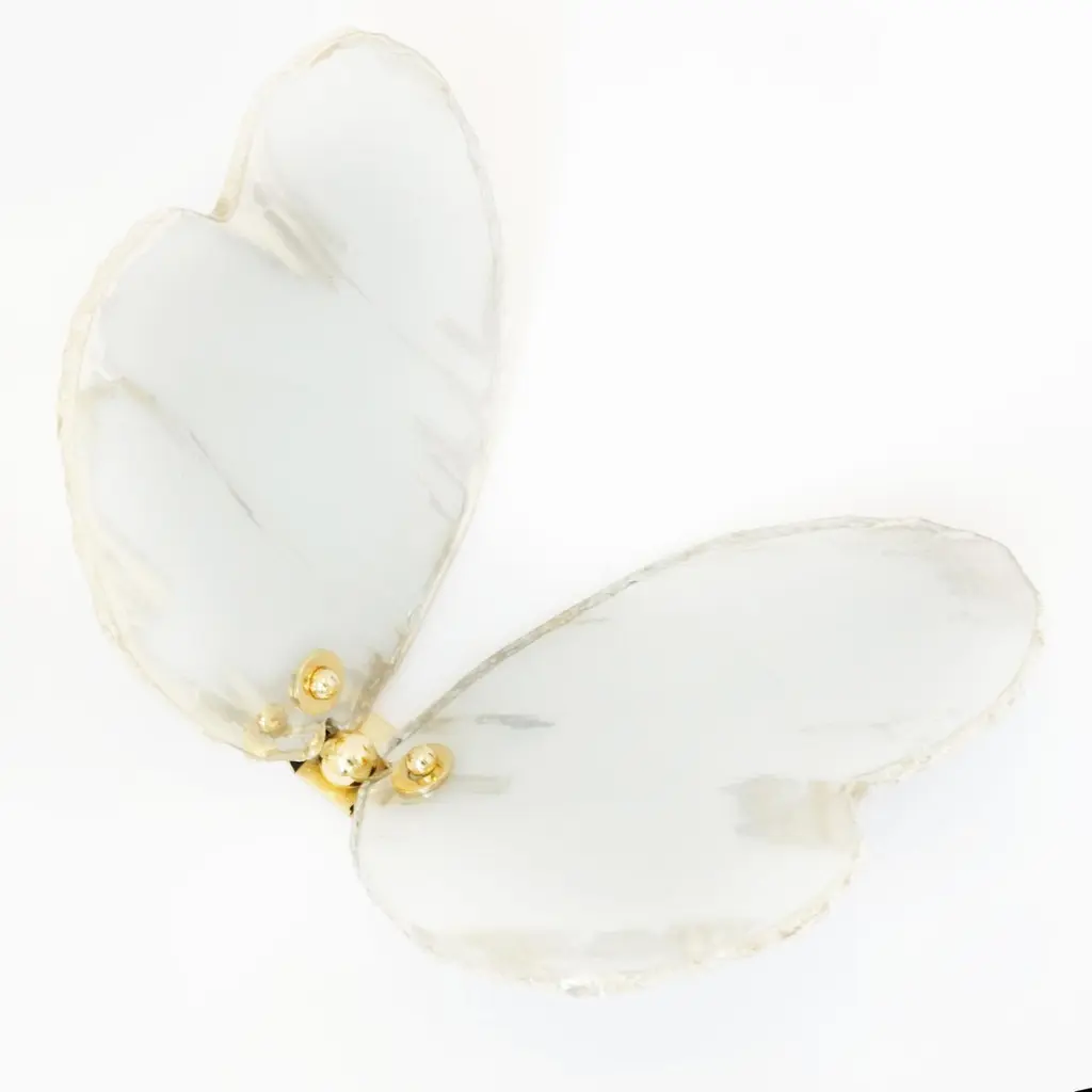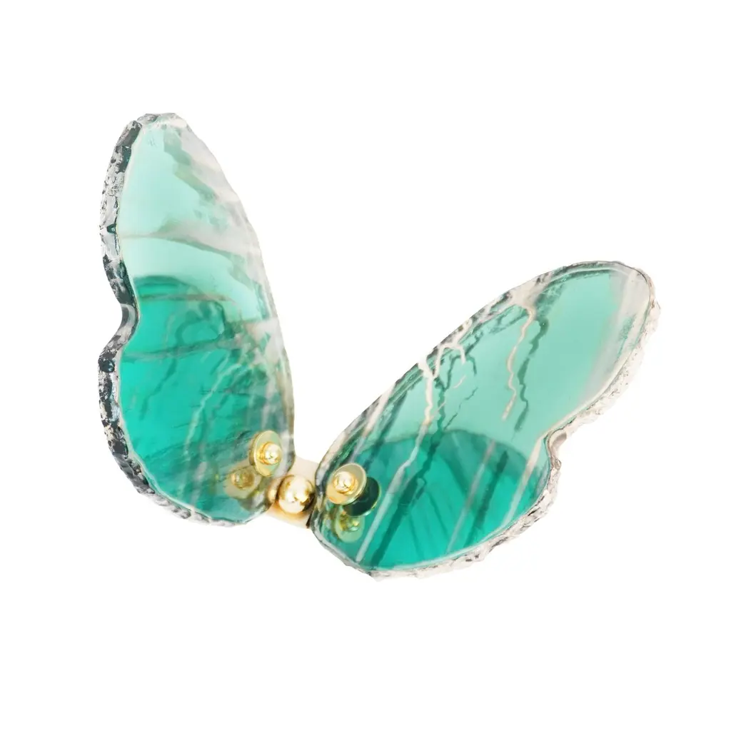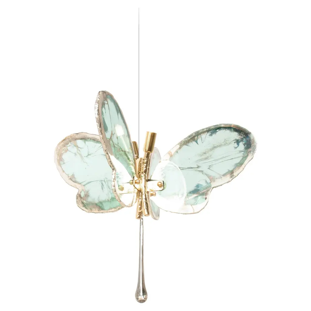 BUTTERFLYThe free dance movementFor more than 22 years, Sabrina Landini pays homage to glass surfaces in her expression of silvered masterworks, the hallmark of her collection.Since the beginning thanks to the Italian hand-made used in our workplace, each unique item is a testament to our commitment to craftsman-ship, with attention to detail and the finest materials.Capture your dream and let your imagination soar with Butterfly, the ethereal light object inspired by the sense of freedom. Symbol of joy, optimism and wonder, the Butterfly takes flight with breathtaking colored wings. To highlight traditional handworks, this magnificent creation features colored hand cut and hammered glass, sprinkled across silvered tones spanning over its surface irregularly with the polished brass body, encrusted as a natural skin, finally embellished with the crystal drop. An artful blend of the iconic collection Sabrina Landini, well known for the innovative creativity. Something brilliant awaits, experience Butterfly! Available in a wide range of silvered glass colors:jade, sun, crystal, smoky grey, aquamarine, roseAvailable in three versions : Butterfly pendant lamp 4 wingsButterfly chandelier 8 wingsWall Butterfly 2 wings CE certified and Electrified : US, EU, UK , G9 lamp holders, dimmable
