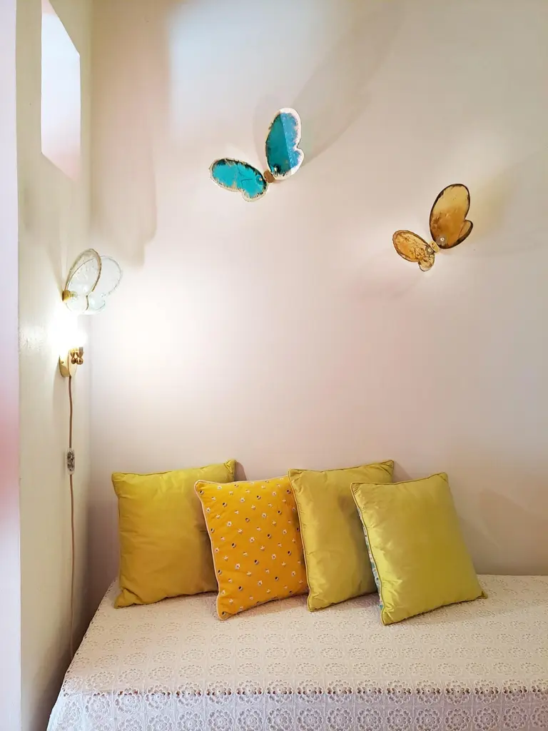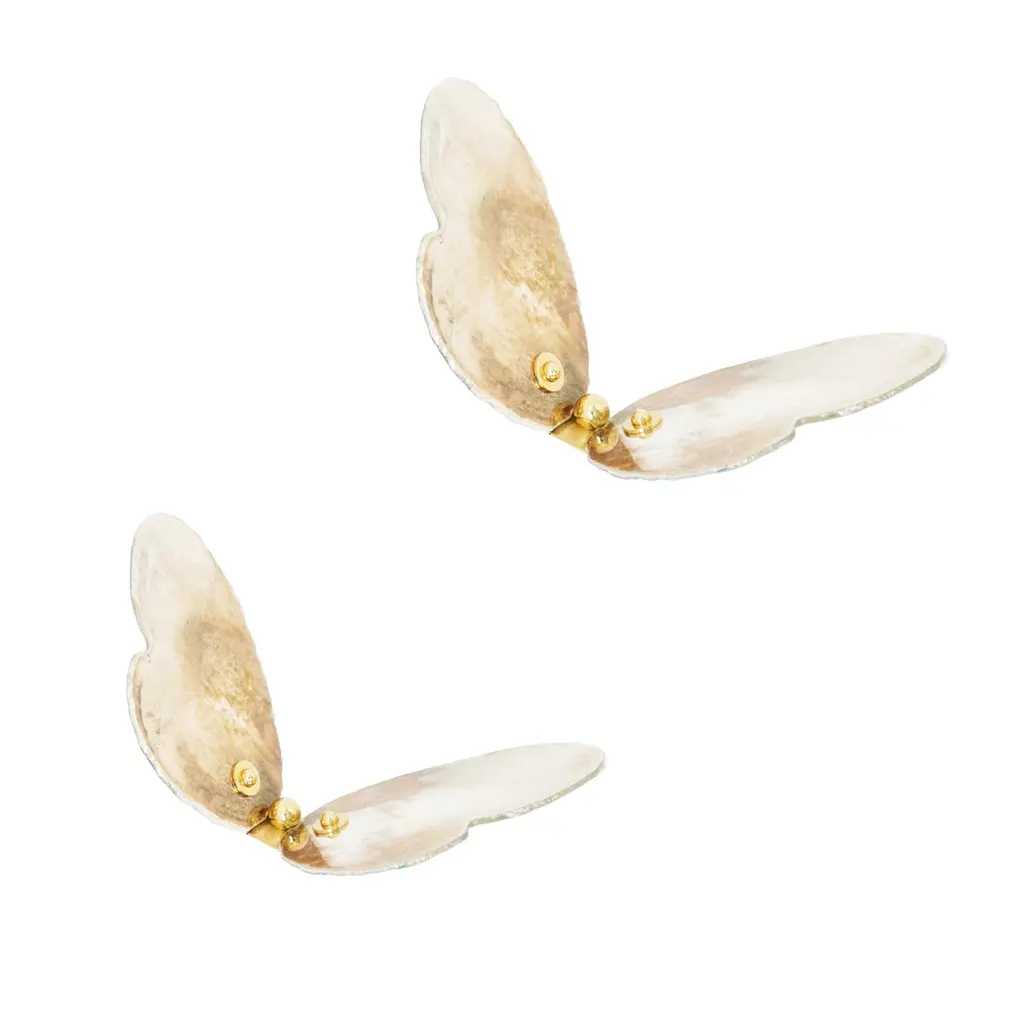 BUTTERFLYThe free dance movementFor more than 22 years, Sabrina Landini pays homage to glass surfaces in her expression of silvered masterworks, the hallmark of her collection.Since the beginning thanks to the Italian hand-made used in our workplace, each unique item is a testament to our commitment to craftsman-ship, with attention to detail and the finest materials.Capture your dream and let your imagination soar with Butterfly, the ethereal light object inspired by the sense of freedom. Symbol of joy, optimism and wonder, the Butterfly takes flight with breathtaking colored wings. To highlight traditional handworks, this magnificent creation features colored hand cut and hammered glass, sprinkled across silvered tones spanning over its surface irregularly with the polished brass body, encrusted as a natural skin, finally embellished with the crystal drop. An artful blend of the iconic collection Sabrina Landini, well known for the innovative creativity. Something brilliant awaits, experience Butterfly! Available in a wide range of silvered glass colors:jade, sun, crystal, smoky grey, aquamarine, roseAvailable in three versions : Butterfly pendant lamp 4 wingsButterfly chandelier 8 wingsWall Butterfly 2 wings CE certified and Electrified : US, EU, UK , G9 lamp holders, dimmable