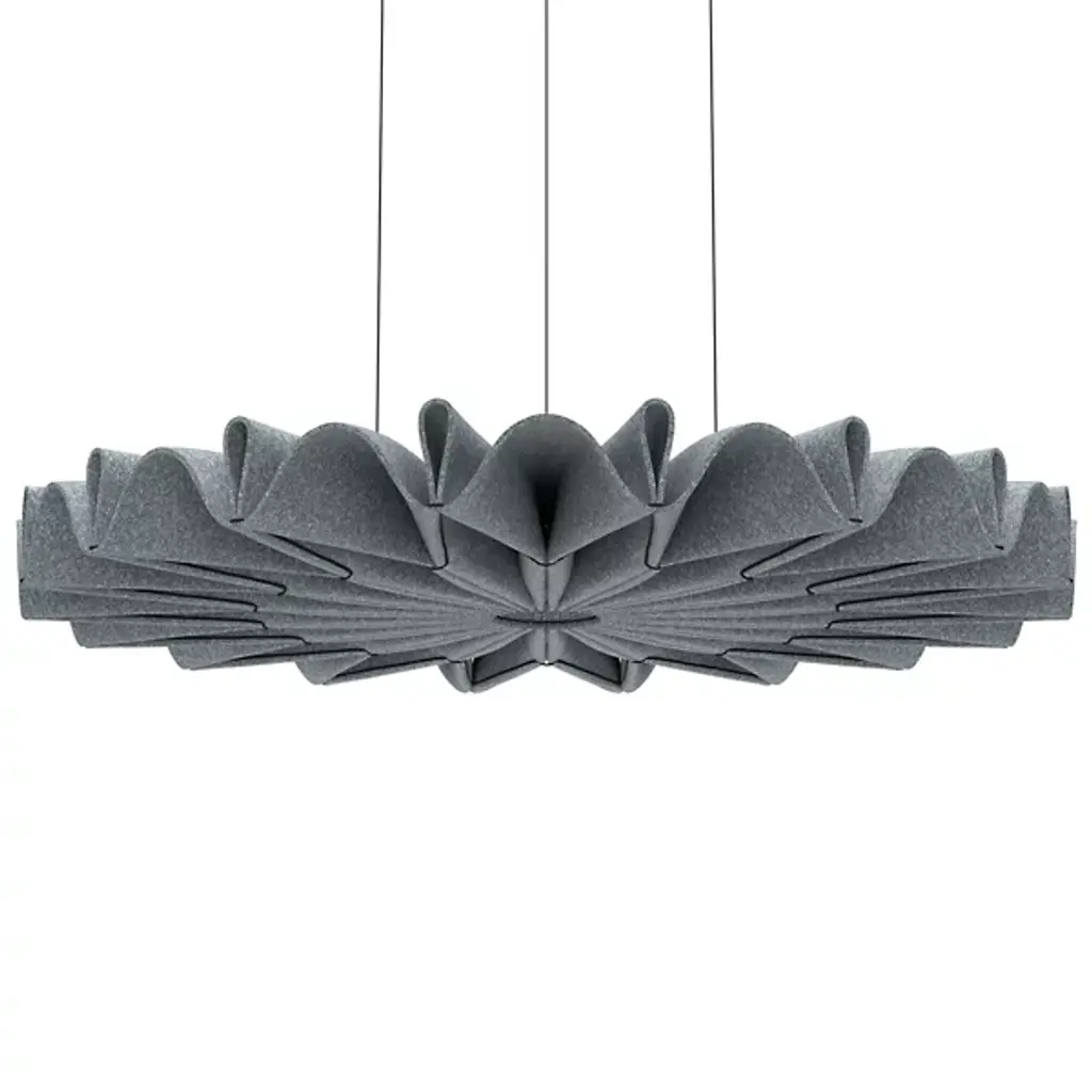 Elevate your space’s interior design by hanging the BuzziPleat Edel Acoustic Decorative Suspended Sculpture from BuzziSpace. Fluid architectural folds flow together in a 360-degree disc shape. It packs an artistic, visual punch yet feels light and airy. The design is modeled after vintage fashion techniques such as pleating. Though it appears voluminous, this hanging sculpture is made from sound absorption material—recycled felt. Hang this decorative pendant anywhere from the office to the basement.