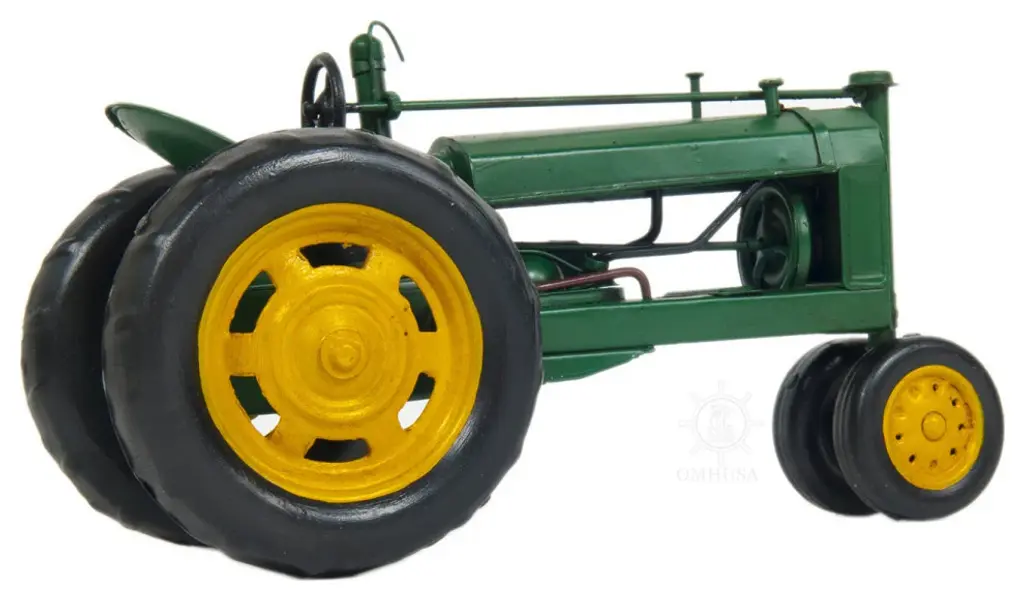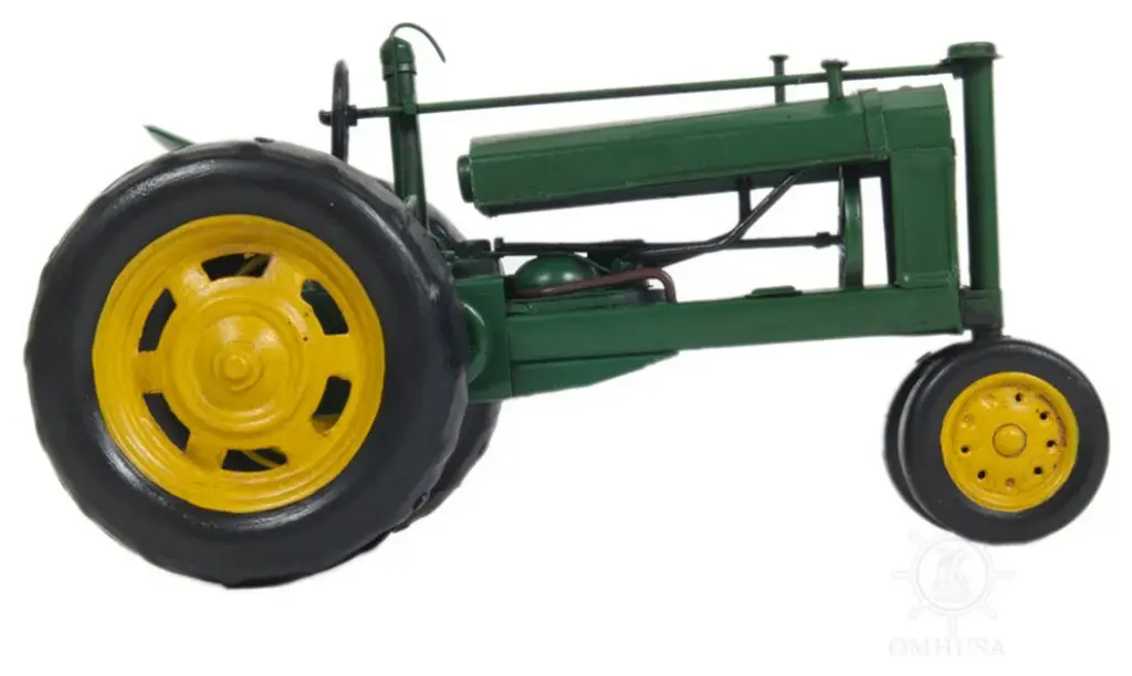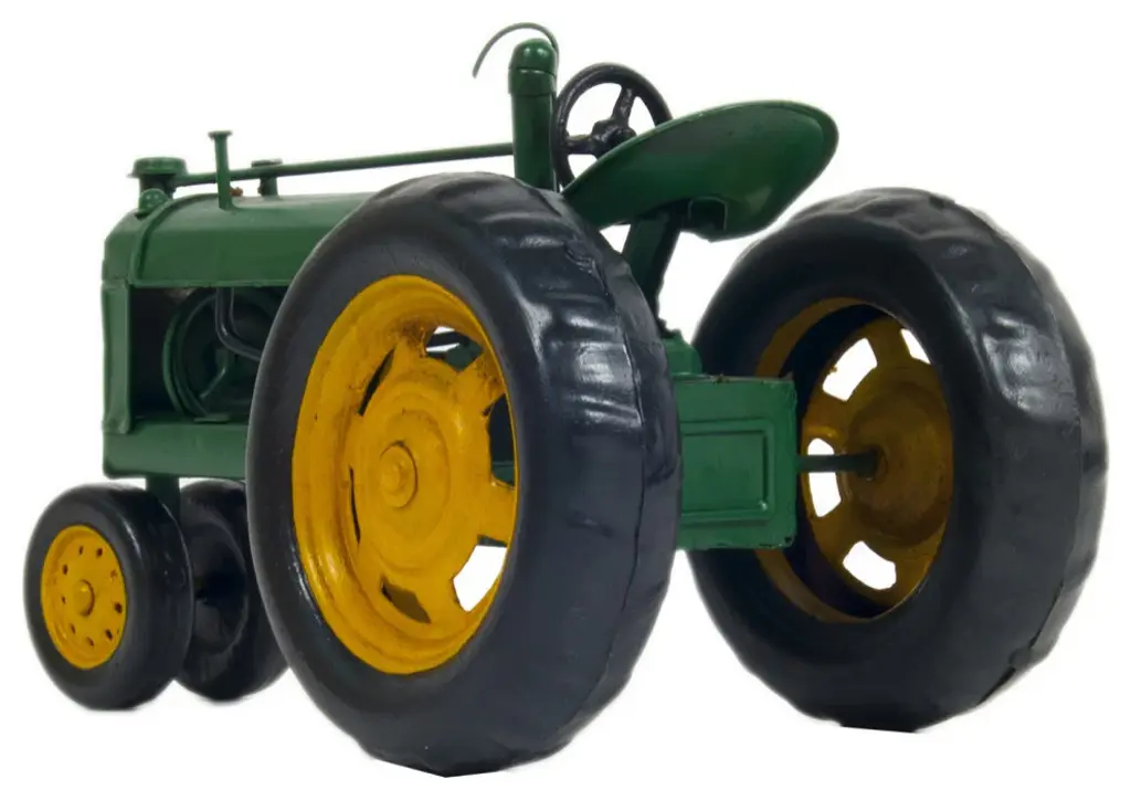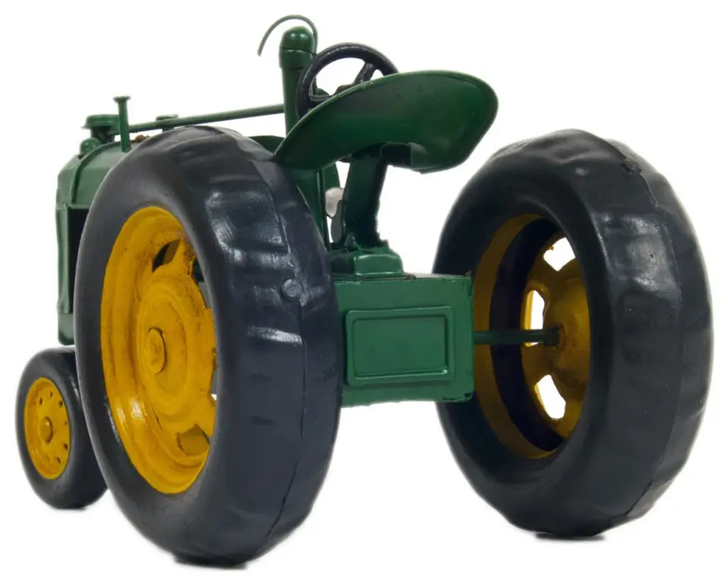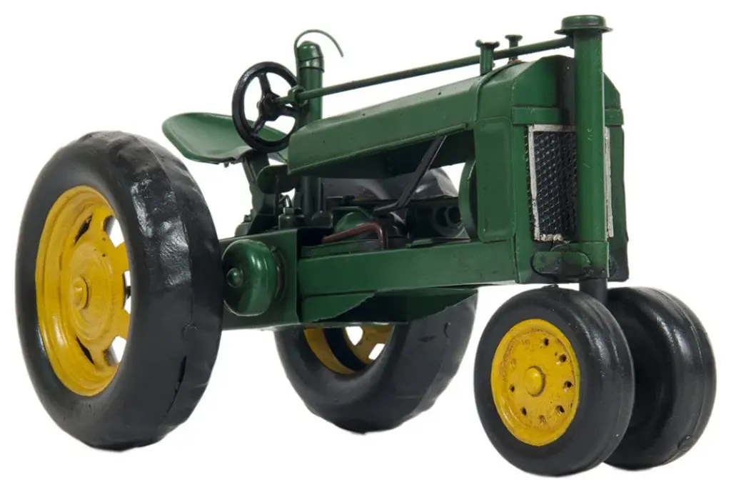 A true icon of the pre-war period, the c1935 John Deere Model B Tractor Sculpture is an authentic replica of the famous two-plow row-crop tractor. Hand-made from metal and hand-painted in John Deere''s distinctive green color it is a true eye-catcher. Collectors will truly appreciate its stunning details like rolling wheels, a seat, two axles a steering wheel, and much more. A great collection piece for anyone interested in this period. 5.5" x 11" x 6.3"