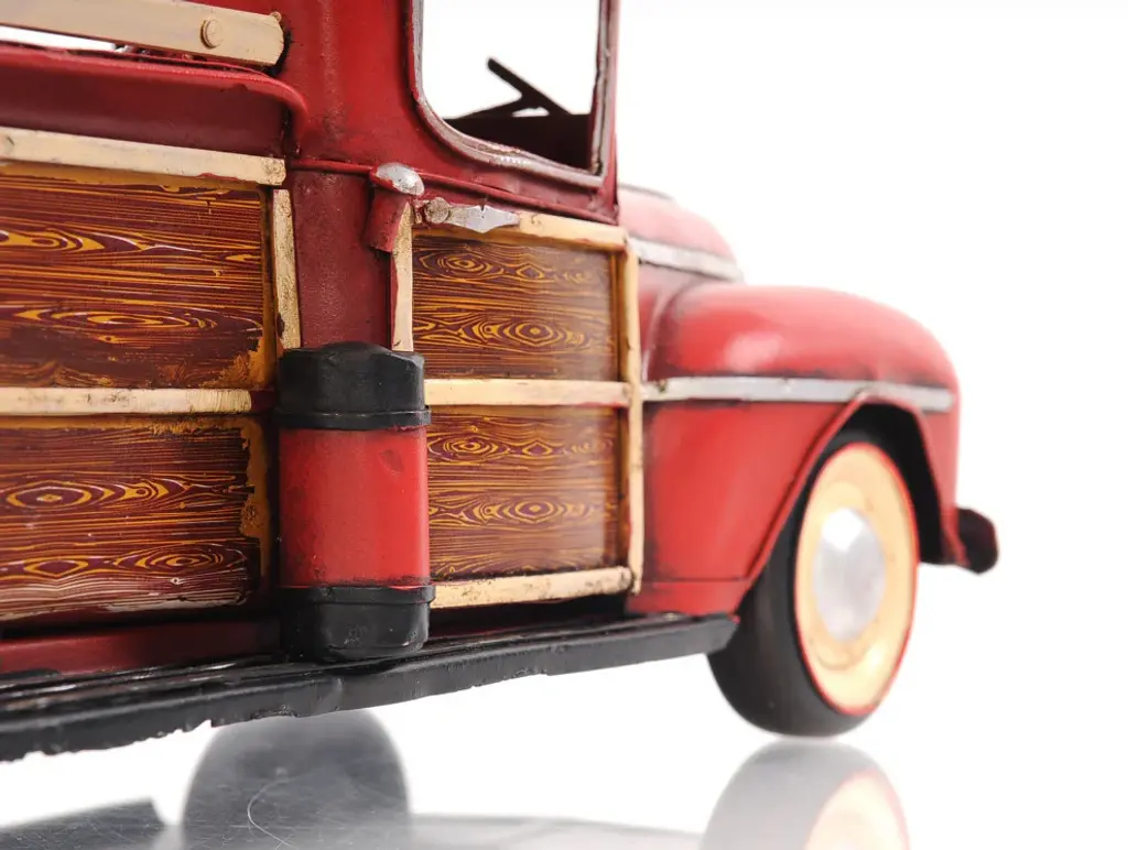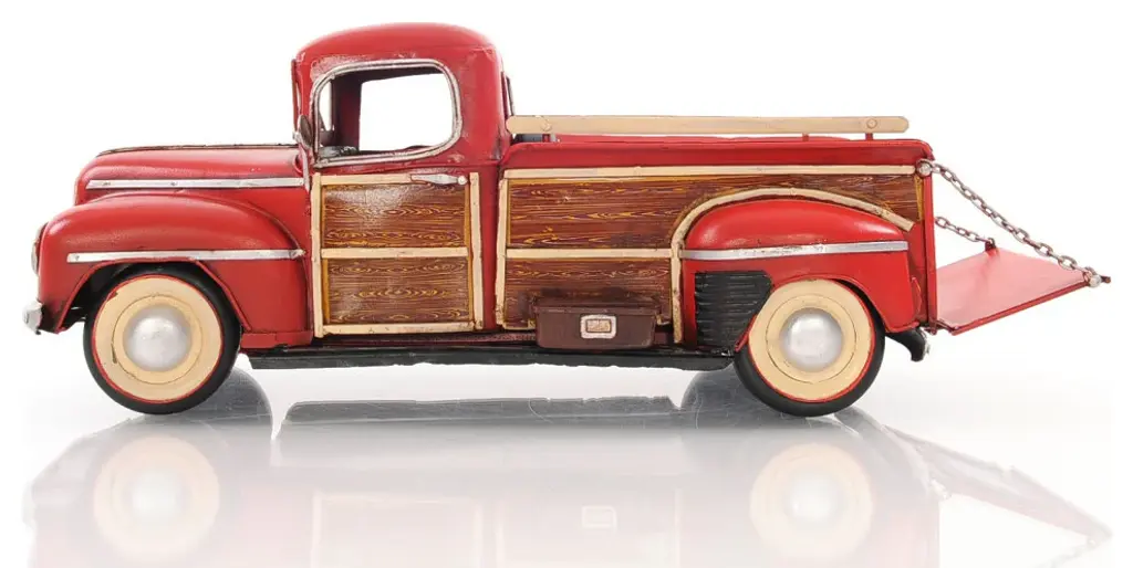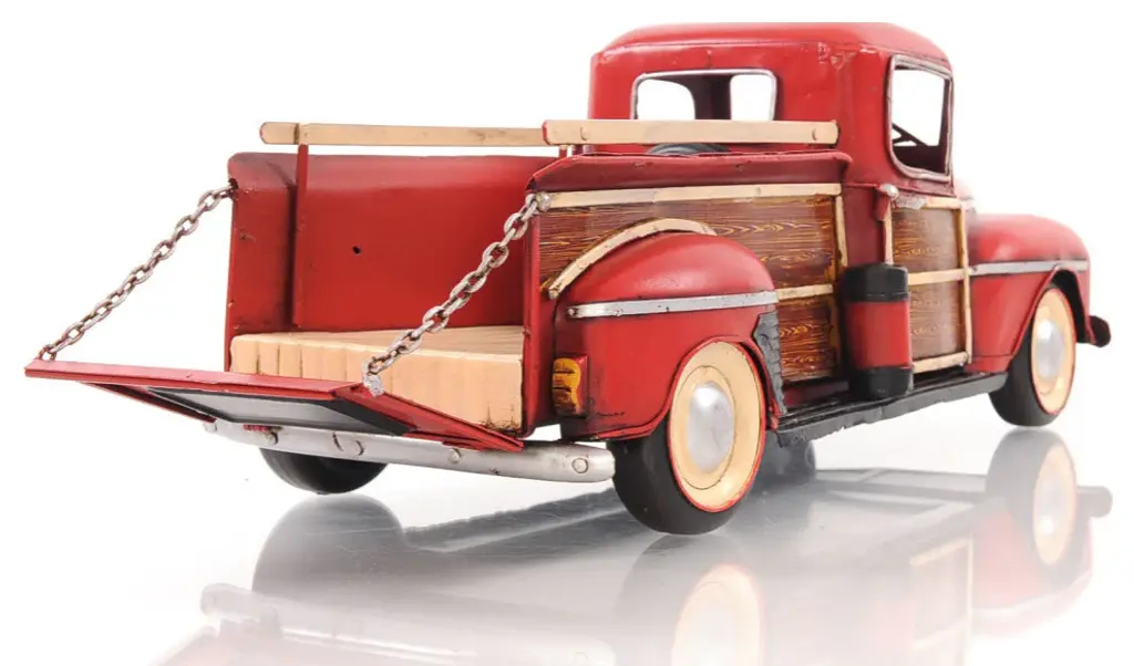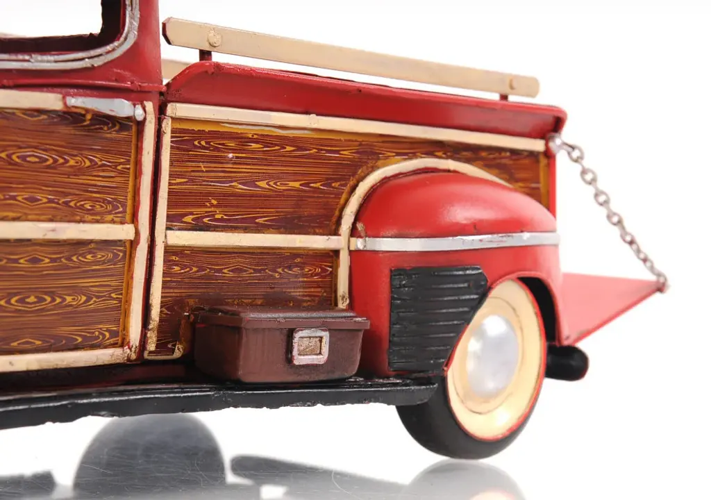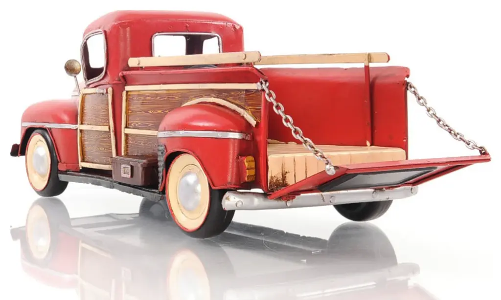 Unveiled just before US involvement in WWII, the production of the 1942 Ford Pickup soon stopped because of the war effort. Because of this, the 1942 model was extremely rare. The c1942 Ford Pickup Truck Sculpture is a 1:12 scale model of this iconic vehicle. Entirely made of metal, with rolling wheels, seats, steering wheel, and intricate details on the dashboard. It even features pare wheels, a tailgate that can be opened and closed, making this replica of the beloved 1942 Ford Truck is a true gem for collectors and enthusiasts. 5.5" x 15.25" x 5.5"