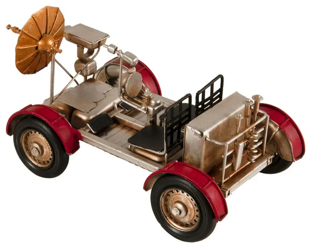 Eyecatching and super realistic, the c1971 Apollo Lunar Roving Vehicle Sculpture of the four-wheeled rover used on the moon during the last three Apollo missions. It features many details like seats, steering, and a satellite dish. It is 100% made from metal with an authentic paint finish and it is a sought-after model for space exploration enthusiasts. 5'''' x 9.5'''' x 5.5"