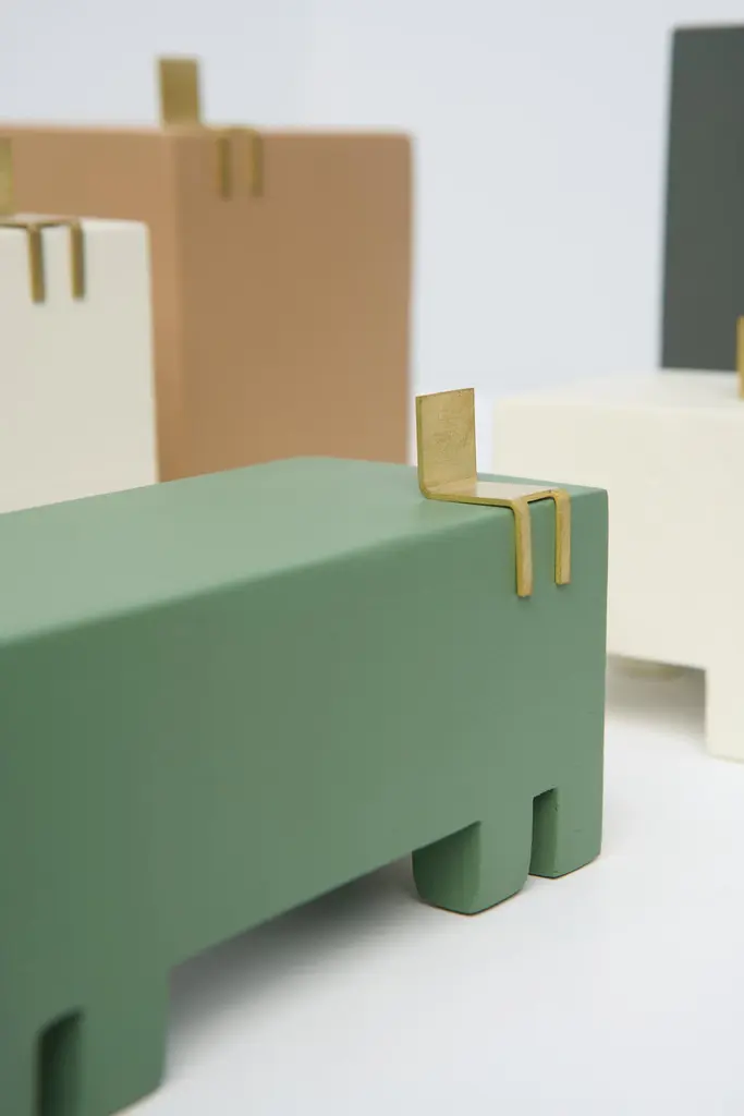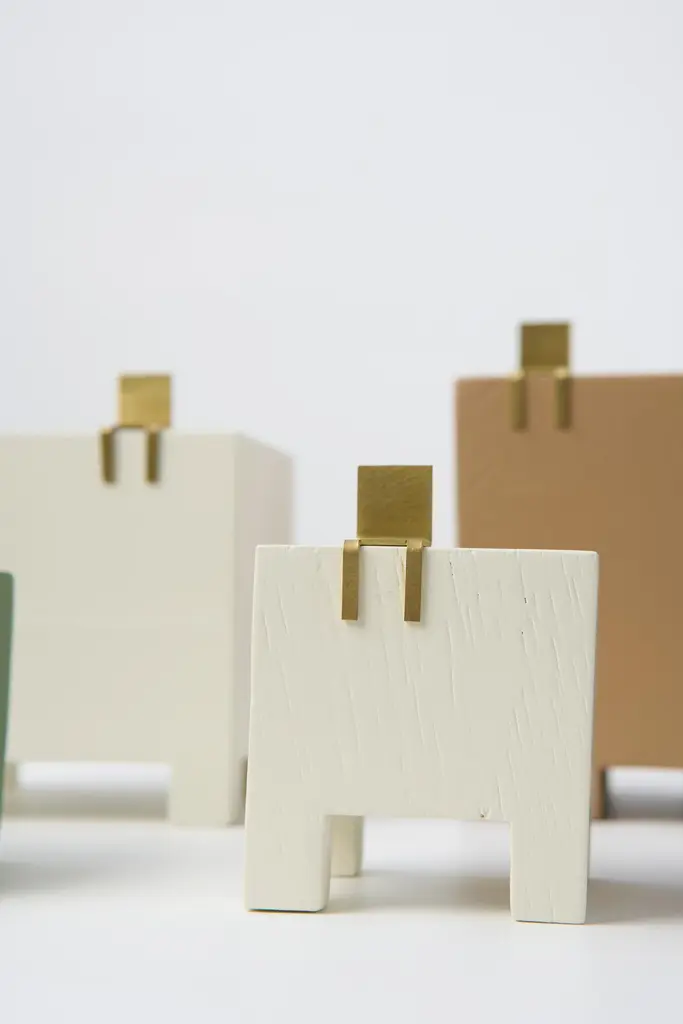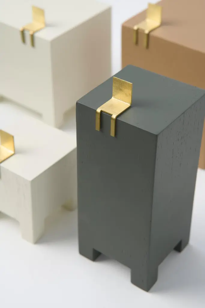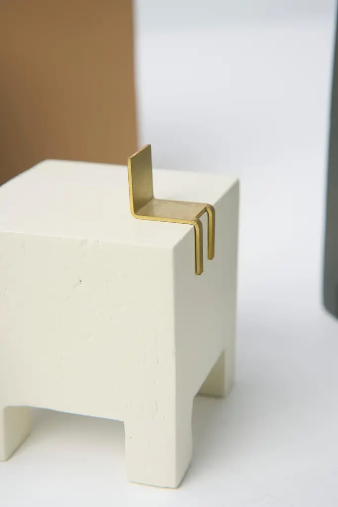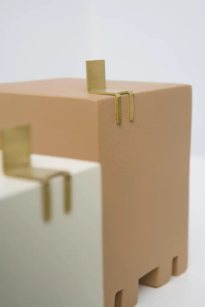 SCULPTURE SERIES CADEIRAIn a chair, a set of qualities, personalities and experiences is built. Its form is characterized as a tool for transposing the relationship between body and object.In addition to its fundamental function, that of sitting, it is also capable of carrying characteristics that could describe personalities, or even serve for contemplation or composition of an environment, such as a sculpture.In this Series by designer Sabrina Borges, the object assumes a role of sculptural contemplation. The Chair Series projects the construction of delicate artifacts, built to stimulate the symbolic relationship between creator and society.Sculpture N1 (Small Cube): 8cm x 8cm x 8cmSculpture N2 (Sideways Rectangle): 12cm x 8cm x 8cmSculpture N3 (Standing Rectangle): 10cm x 10cm x 14cmSculpture N4 (Taller Cube): 8cm x 8cm x 15cmSculpture N5 (Tallest Cube): 7cm x 7cm x 16cm_Material: Brass and Wood._Price of set