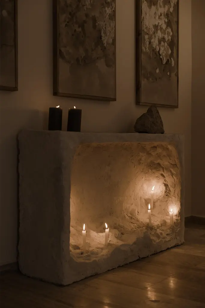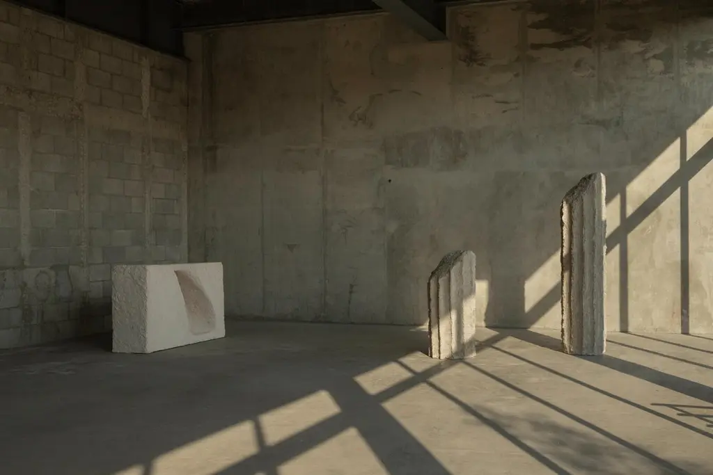 Calizas Labyrinth Sculpture by NUDADimensions: W 145 x D 40 x H 86 cmMaterials: Sand, Concrete, Black Soil, Powder Coating.Other colors available, please contact us for any requests. Through a deep analysis of the profound impact on the mind when immersed in a specific context, and embracing limestone as the primary visual element, this trilogy arises with the aim of arranging architectural elements in a configuration that defies the prevailing routine. Aspiring to transcend the conventional notion of an "object" associated with certain elements within an architectural space, the objective is to metamorphose the home into a sculptural space where the artworks not only creating moments of contemplation and appreciation but also stimulation of mental processes.NUDA makes readings of space under four forms of thought; Architecture, Landscape, Art and Acoustics. A transdisciplinary studio sustained by a philosophy oriented towards contemplation, exploration and questioning of current architectural processes. Grounded in a sensitive and functional analysis of space.