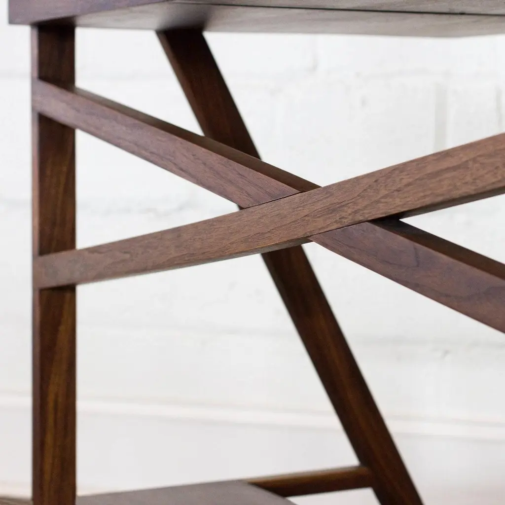 Cantilever desk by PhaedoDimensions: W 60" x D 24" x H 45" inchesMaterials: Natural Black Walnut The Cantilever Desk draws upon the form and function of the seating in this series of work.Phaedo is a sculpture and design company founded by Morgan Spaulding.At once playful and restrained, somber and lively, Spaulding’s art and furniture personify the ambiguous curvatures of ethereal in-betweens: dreamstates, memories in recession, thresholds in passing.In balanced practice, Spaulding’s ornamental sculpture and functional furniture and design objects strengthen with time. Each piece exists to graft its design story with its relationship to present spaces and contexts. All of Phaedo’s pieces are designed and created by Spaulding in New York’s Catskill Mountains.
