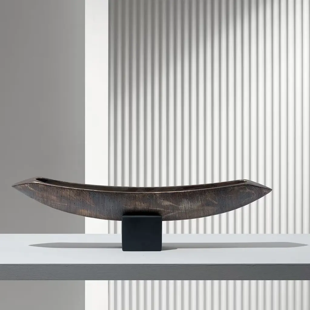 This object-sculpture is made of treated ceramic with surface finish made of metal oxide glazes. The base is made of ceramic with burnished metal effect.
