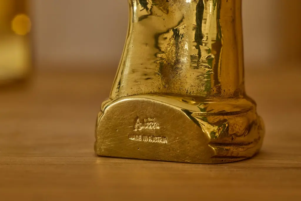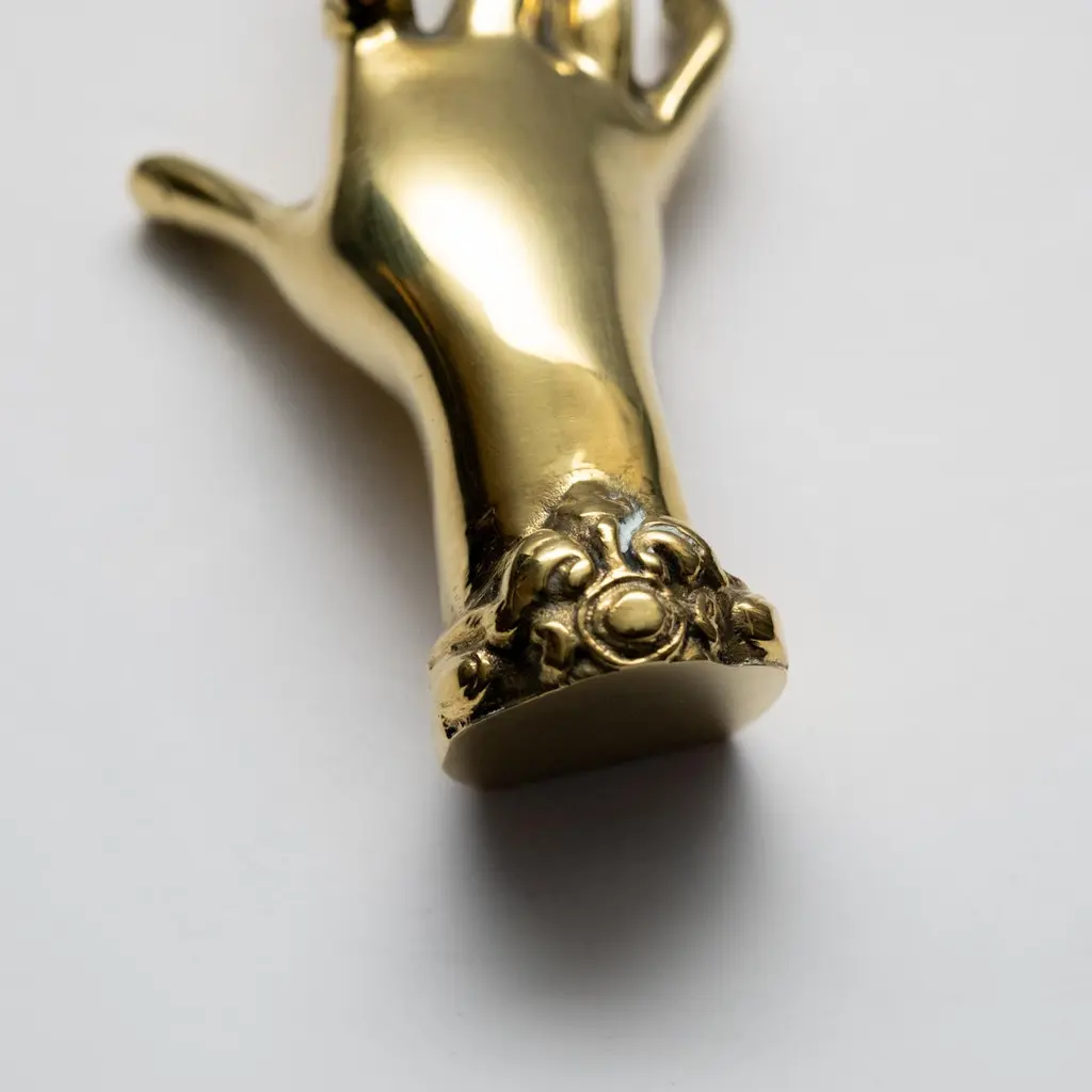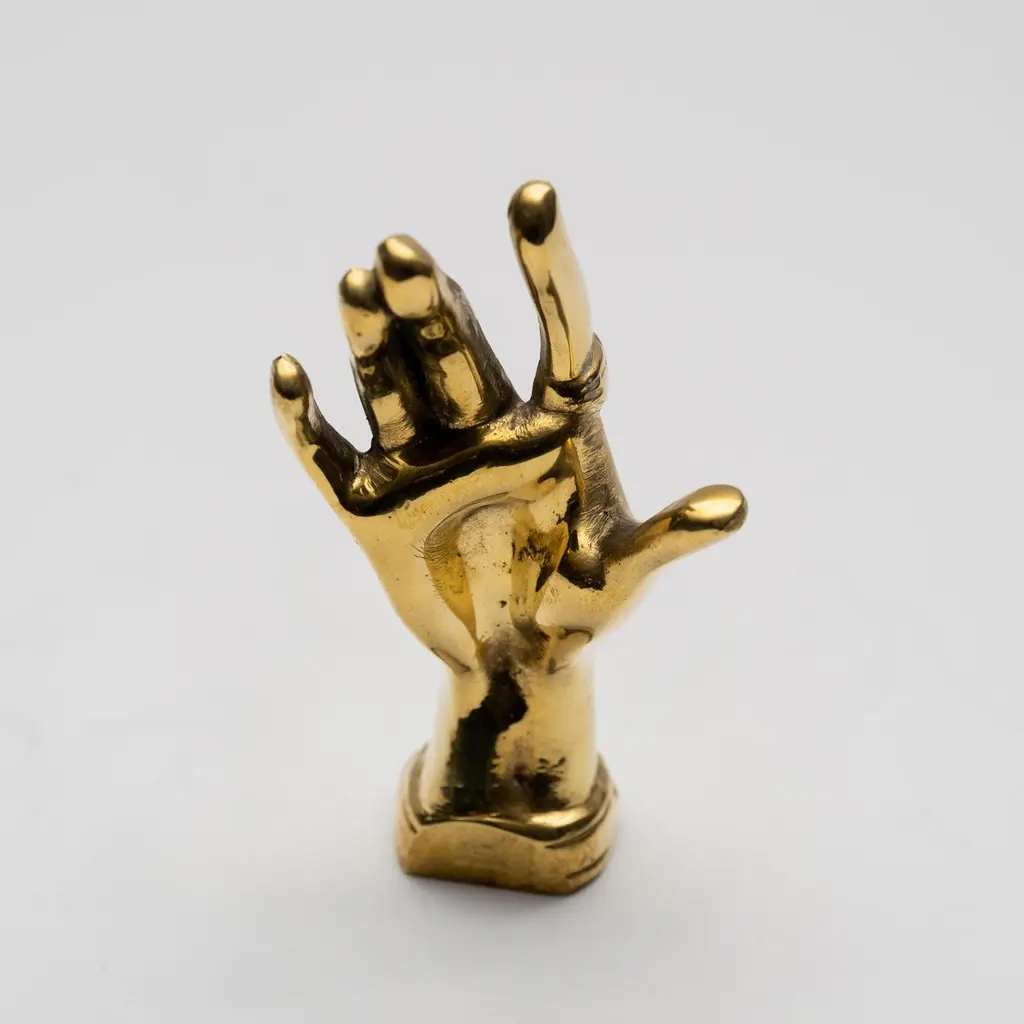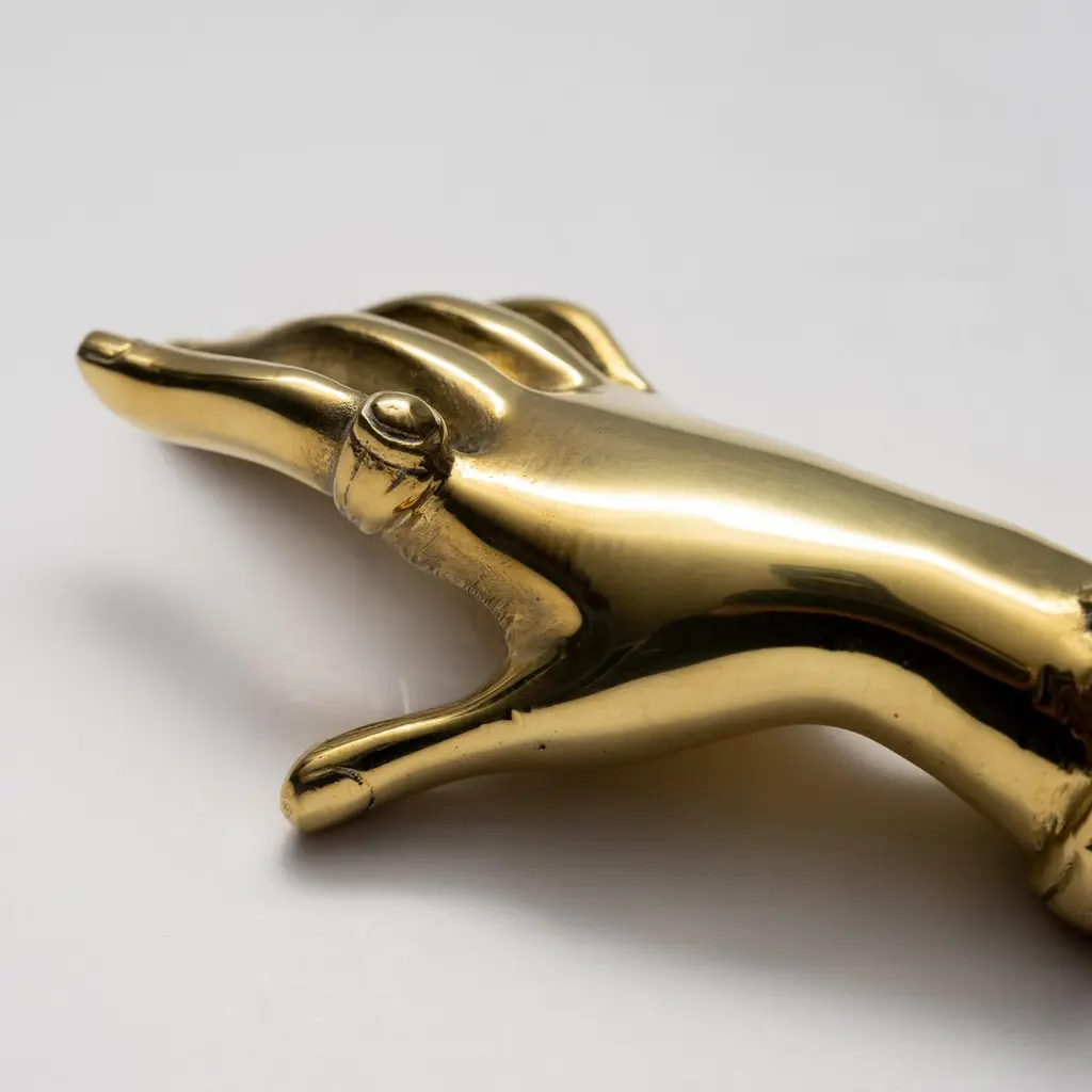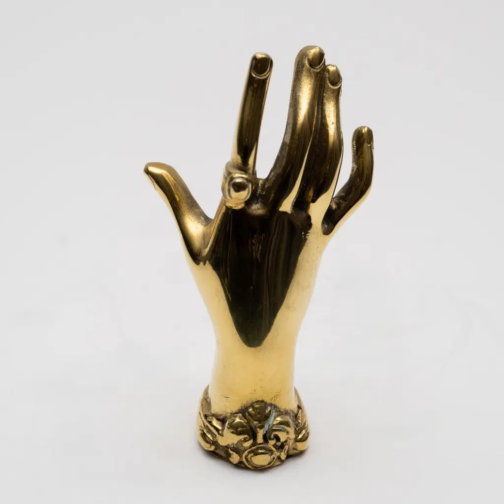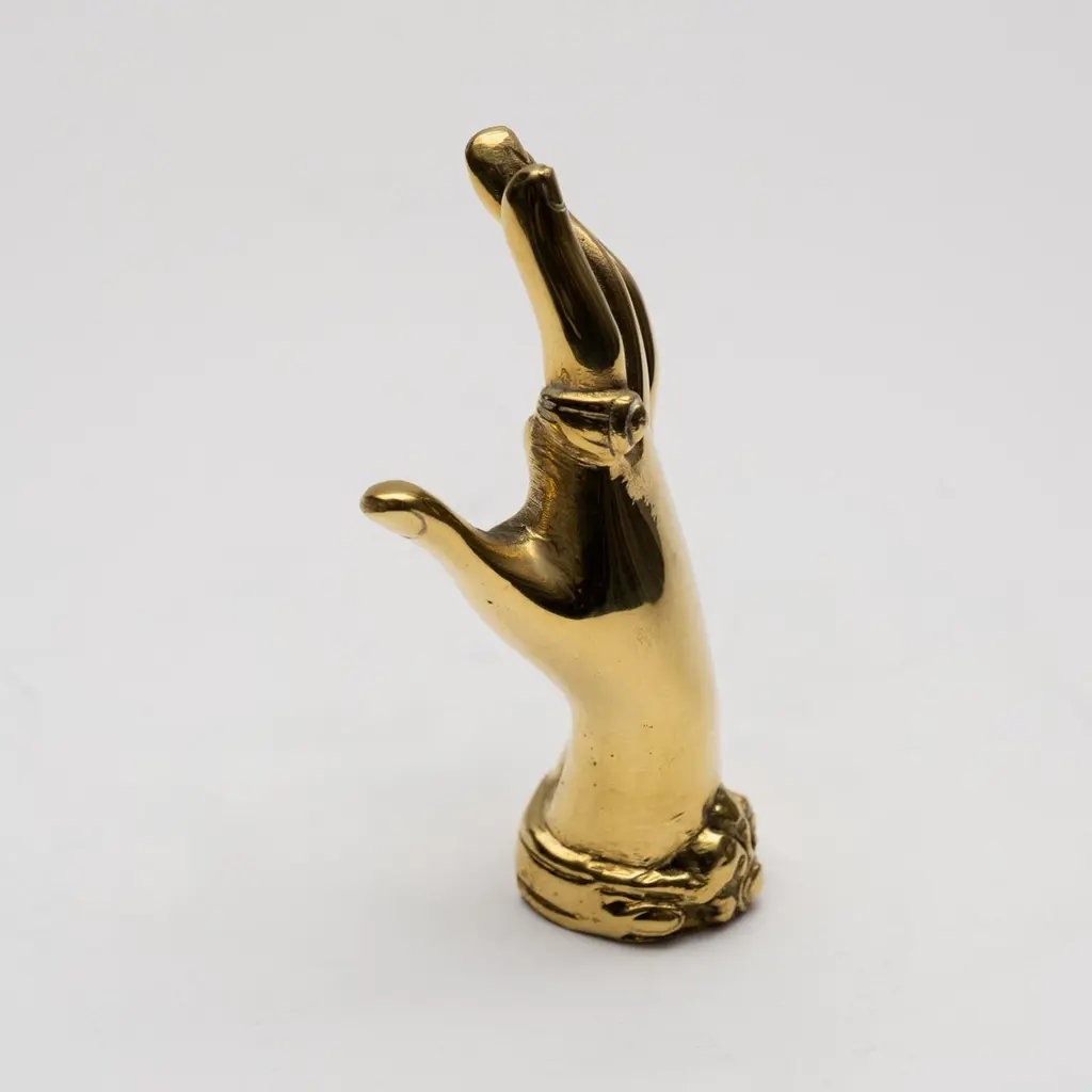 Carl Auböck Model #5275 'Zumbusch Hand' Brass SculptureDesigned in the 1950s, as an homage to German sculptor Kaspar von Zumbusch, this incredibly refined and sculptural bejeweled hand is executed in polished brass. This piece makes a beautiful gift for collectors or design lovers. The sculpture can stand up or rest on its side to serve as a catch-all.Price is per item. Available in unlimited quantities.One in stock and ready to ship. In-stock availability subject to change at any time. Allow additional 2-3 weeks or more for items not in stock. For time-sensitive orders, kindly inquire prior to purchasing.Produced by Carl Auböck IV in the original Auböck Werkstätte in the 7th district of Vienna using the same exacting standards, high-quality materials, original molds and techniques of his legendary grandfather. Auböck's design career was long and varied, reaching its pinnacle of prestige at the Triennale di Milano in 1954, where he received four gold medals in recognition of his iconic work.Please note that only one representative example of each item is shown in the images. Finish varies from item to item due to the handmade nature of their fabrication and due to the unique chemical patination process, which is meant to simulate 80-100 years of exposure of brass to sunlight.Made to order.