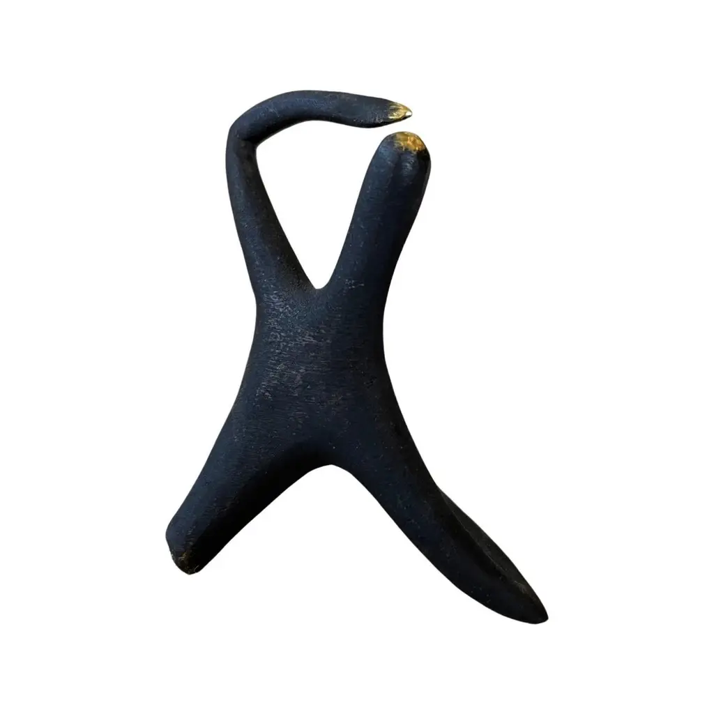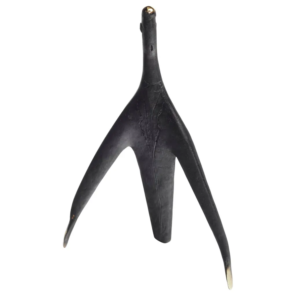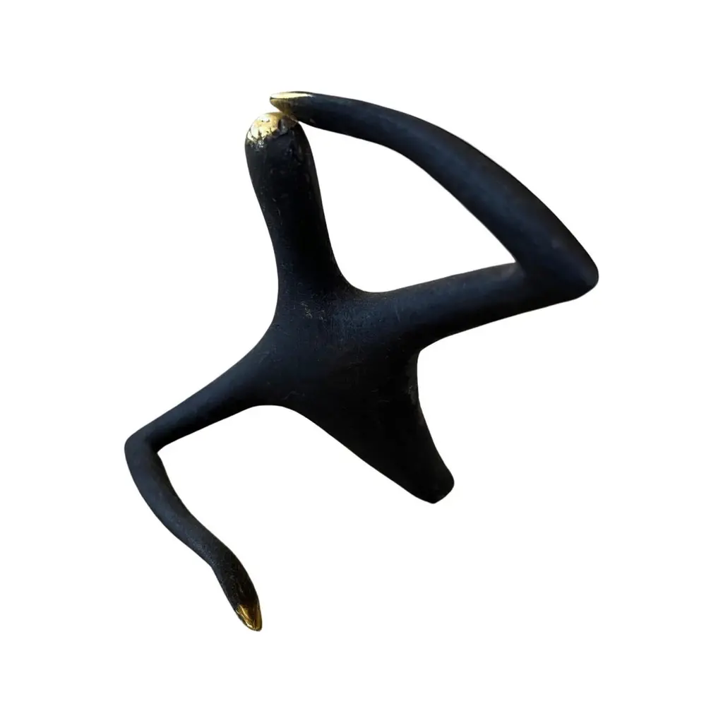 Carl Aubock Patinated Brass "Optimist" Sculpture #4049. Produced by Carl Auböck IV in the original Auböck workshop in Vienna, Austria using the same standards, high-quality materials, molds and techniques of his predecessors. Auböck designs are unique and vary from works of art to useful daily household items which provide functional, aesthetically pleasing conversation pieces for the home and office. Price is per item. One in stock ready to ship. Available in unlimited quantities. Please note that in-stock availability is subject to change at any time. Allow additional 3-4 weeks for items not in stock. Some items can take up to 8 weeks or more.