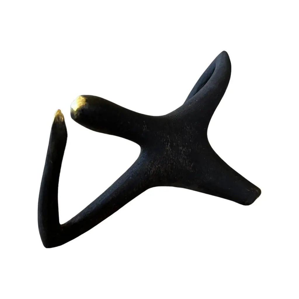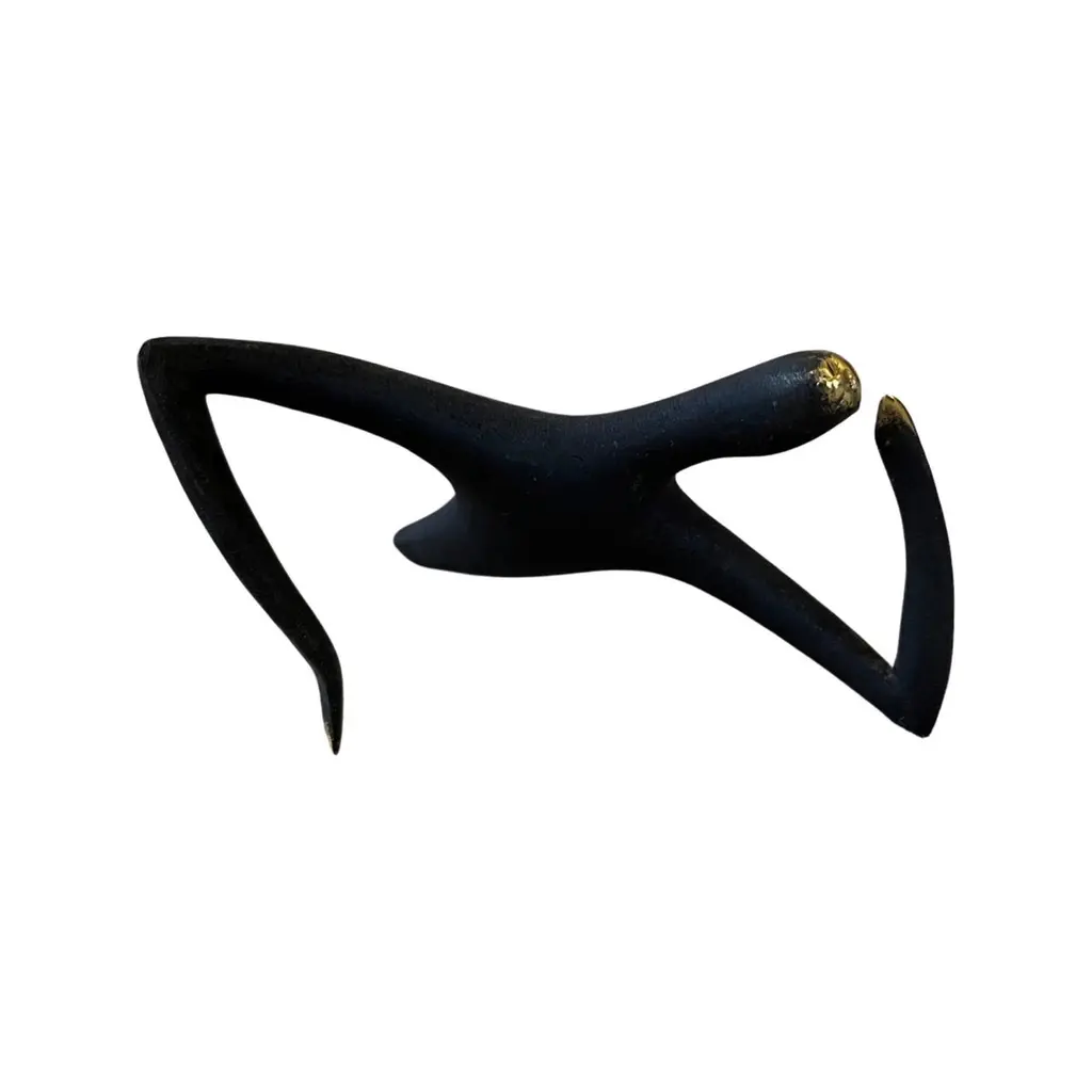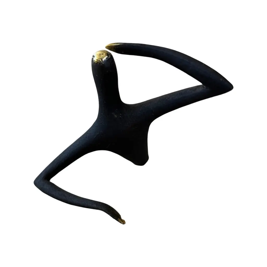 Carl Aubock Patinated Brass "Optimist" Sculpture #4049. Produced by Carl Auböck IV in the original Auböck workshop in Vienna, Austria using the same standards, high-quality materials, molds and techniques of his predecessors. Auböck designs are unique and vary from works of art to useful daily household items which provide functional, aesthetically pleasing conversation pieces for the home and office. Price is per item. One in stock ready to ship. Available in unlimited quantities. Please note that in-stock availability is subject to change at any time. Allow additional 3-4 weeks for items not in stock. Some items can take up to 8 weeks or more.