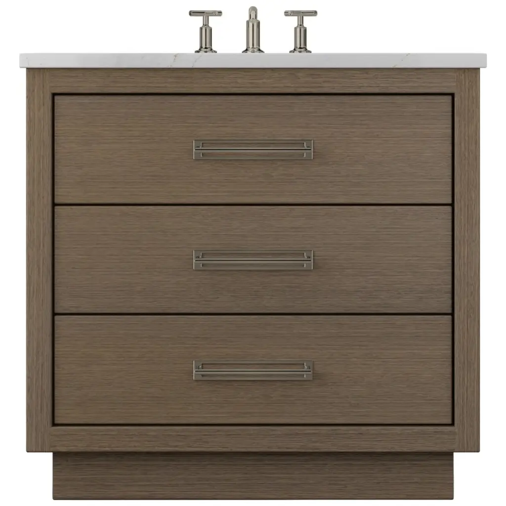 The Carrington Single Extra Wide Bathroom Vanity is a masterpiece that seamlessly blends contemporary design with the timeless elegance of handcrafted artistry. This freestanding vanity stands as a testament to exquisite craftsmanship, featuring a robust 2" frame that exudes strength and sophistication. The decorative hardware, complete with a backplate, adds a touch of refined elegance, making it a focal point in any bathroom setting. At the heart of this vanity lies a full-height door sink base, gracefully flanked by two wide drawer banks. Each drawer and door is equipped with soft-close glides, ensuring a whisper-quiet closure that speaks to the quality and attention to detail inherent in its design. Available in a variety of custom finishes and sizes, the Carrington Vanity offers versatility and style, allowing it to harmonize beautifully with any decor. Embrace the allure of the Carrington collection and transform your space into a sanctuary of beauty and functionality.