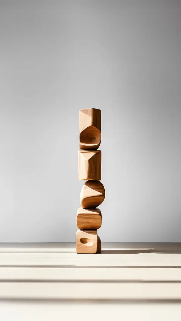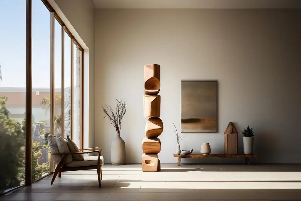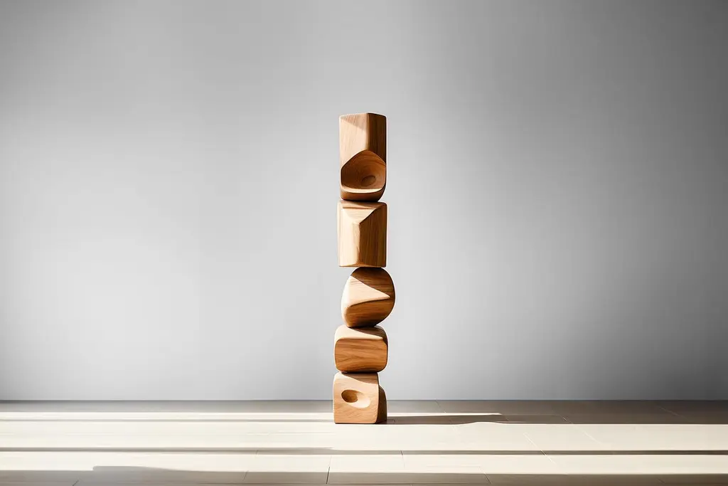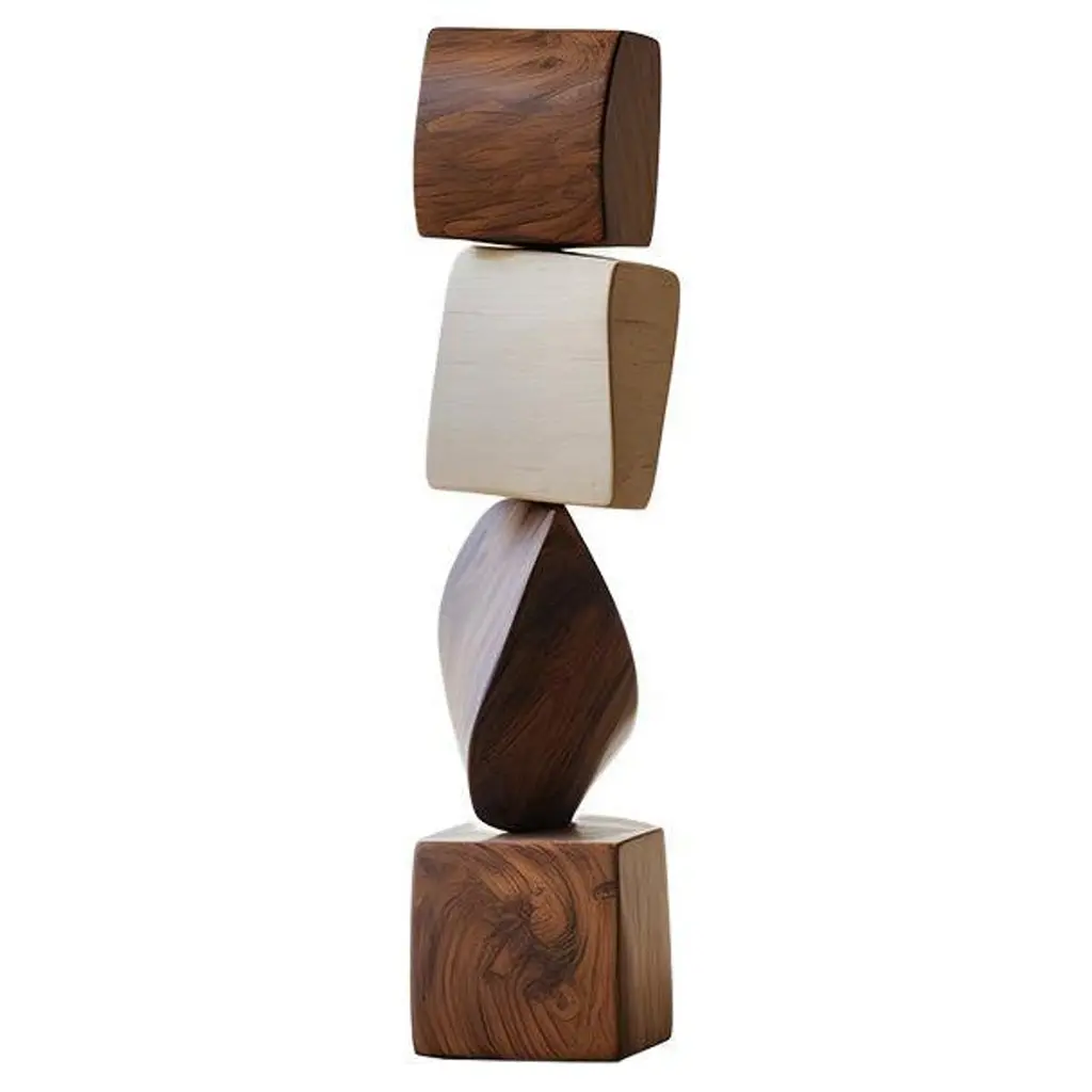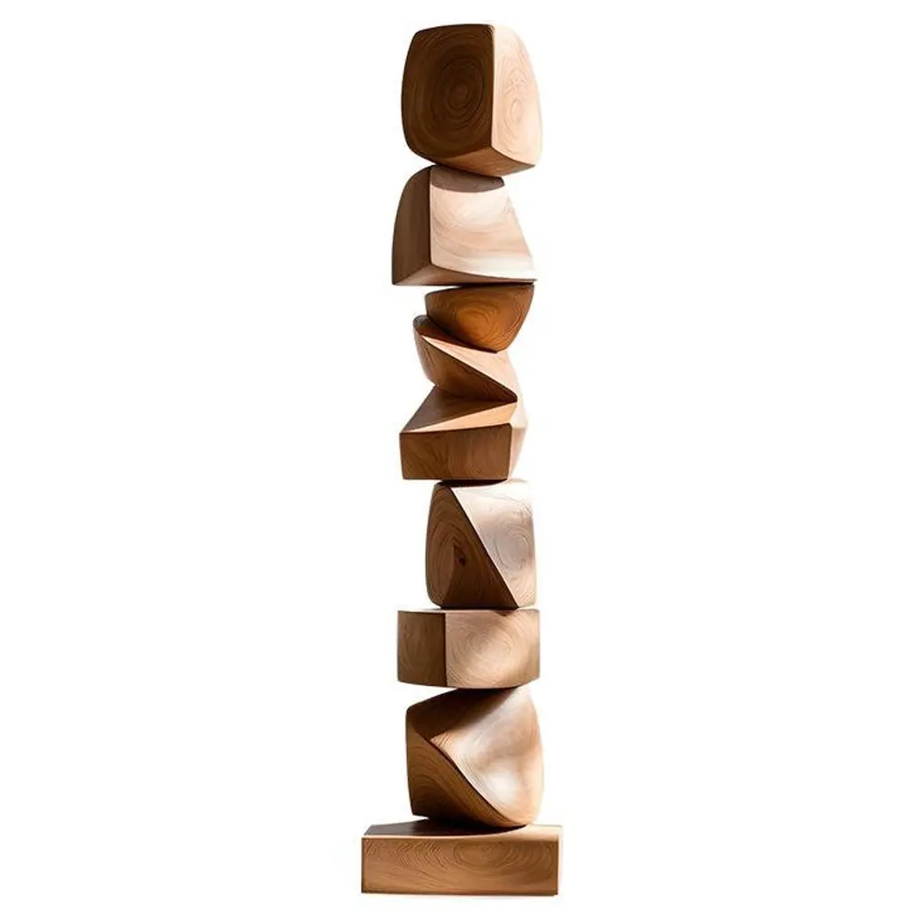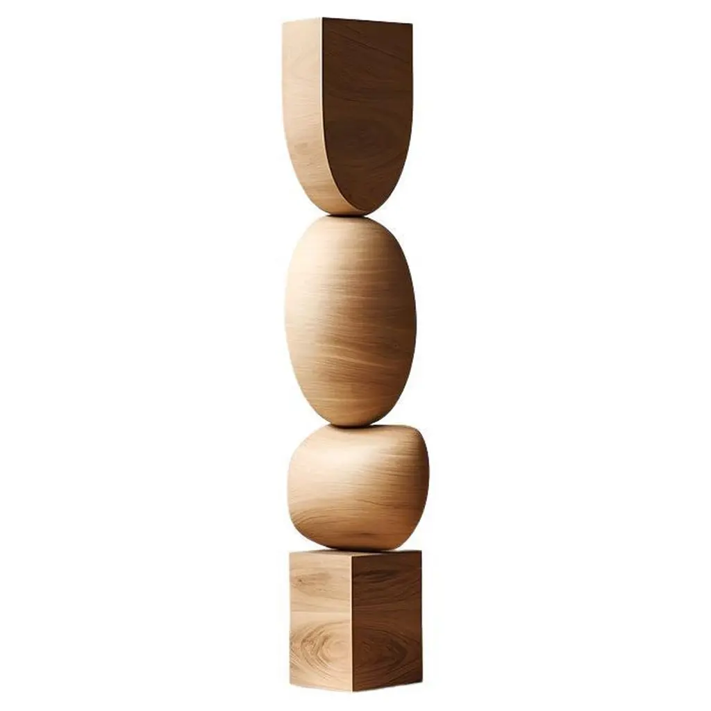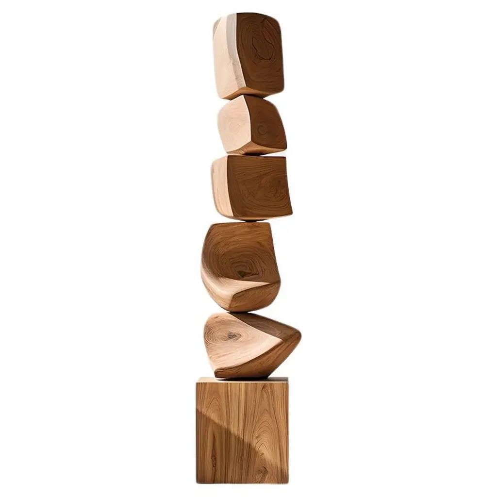 Carved Wooden Harmony Still Stand No63: Abstract Totem By Joel Escalona
