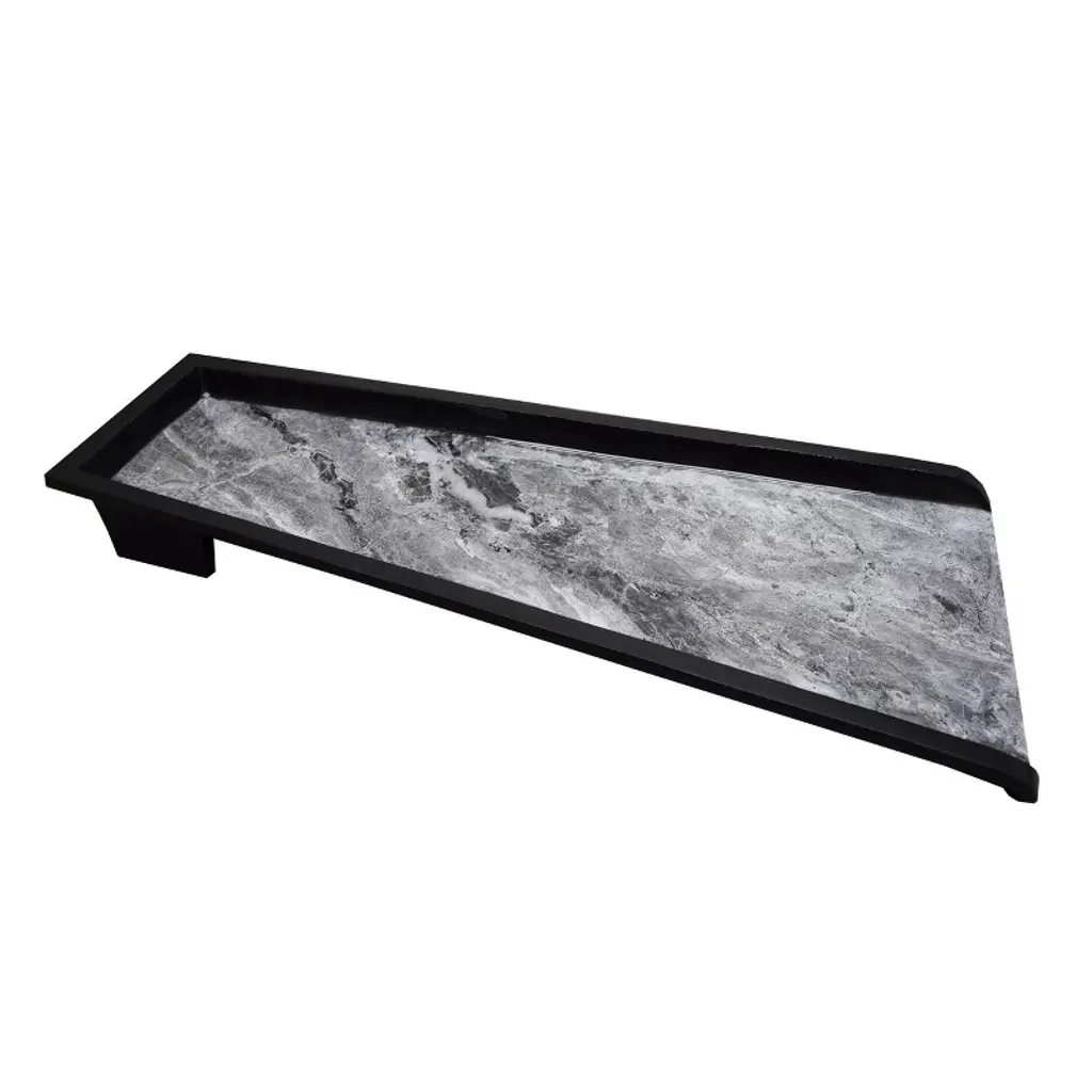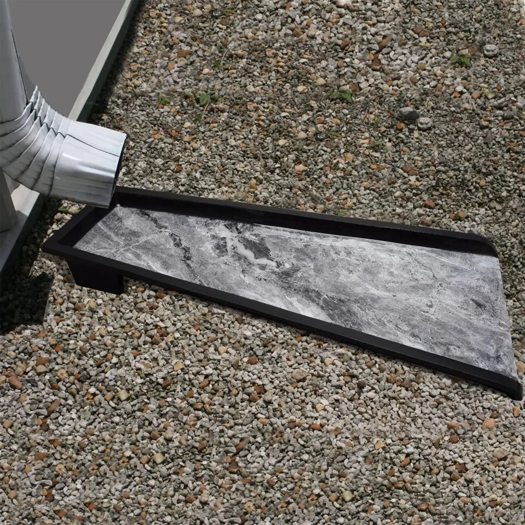 For an easy and convenient way to move damaging rainwater away from your foundation, look no further than the new Gray Faux Marble Cast Aluminum Downspout Gutter 24 in. Splash Block. The perfect angled pitch allows it to fit underneath your downspout and moves water effectively. This splash block is made out of solid heavy cast aluminum metal preventing it from being impacted by any severe weather or wind. Unlike other cheap plastic splash blocks, the durable cast aluminum construction is rust proof which will withstand all elements and last many years. Along with being more durable this splash block also acts as a beautiful outdoor sculpture to compliment your living space. This splash block is the best long-lasting solution for moving damaging rainwater away from your home. Gray Faux Marble Cast Aluminum Downspout Gutter 24 in. Splash Block Dimensions are: 24" L x 11.5"W x 3"H, 7.5 lbs.