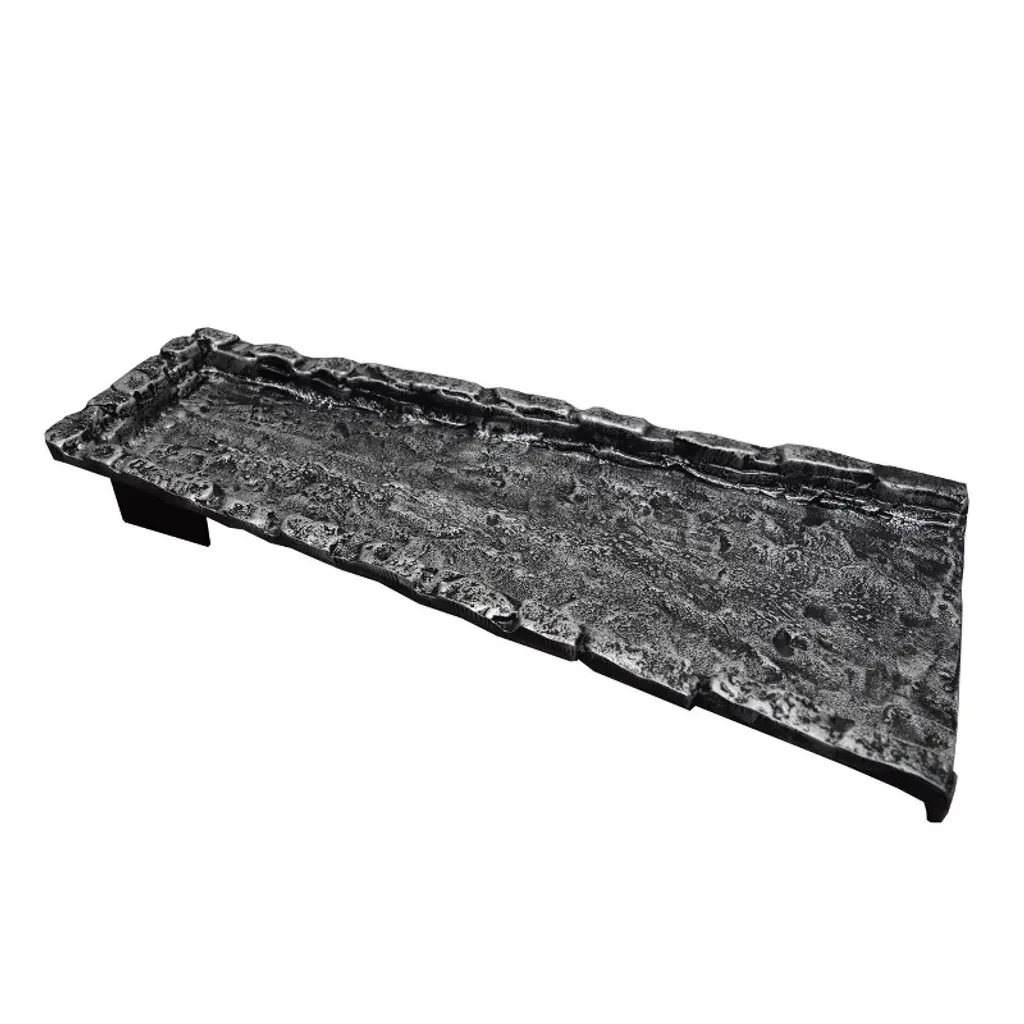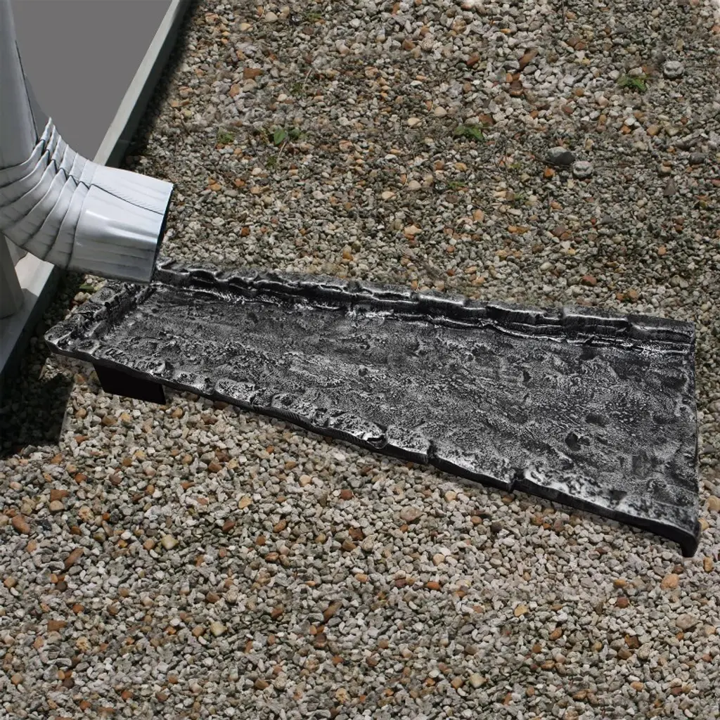 For an easy and convenient way to move damaging rainwater away from your foundation, look no further than the new Silver Slate Stone Rock Cast Aluminum Downspout Gutter 24 in. Splash Block. The perfect angled pitch allows it to fit underneath your downspout and moves water effectively. This splash block is made out of solid heavy cast aluminum metal preventing it from being impacted by any severe weather or wind. Unlike other cheap plastic splash blocks, the durable cast aluminum construction is rust proof which will withstand all elements and last many years. Along with being more durable this splash block also acts as a beautiful outdoor sculpture to compliment your living space. This splash block is the best long-lasting solution for moving damaging rainwater away from your home. Silver Slate Stone Rock Cast Aluminum Downspout Gutter 24 in. Splash Block Dimensions are: 24" L x 11.5"W x 3"H, 7.5 lbs.