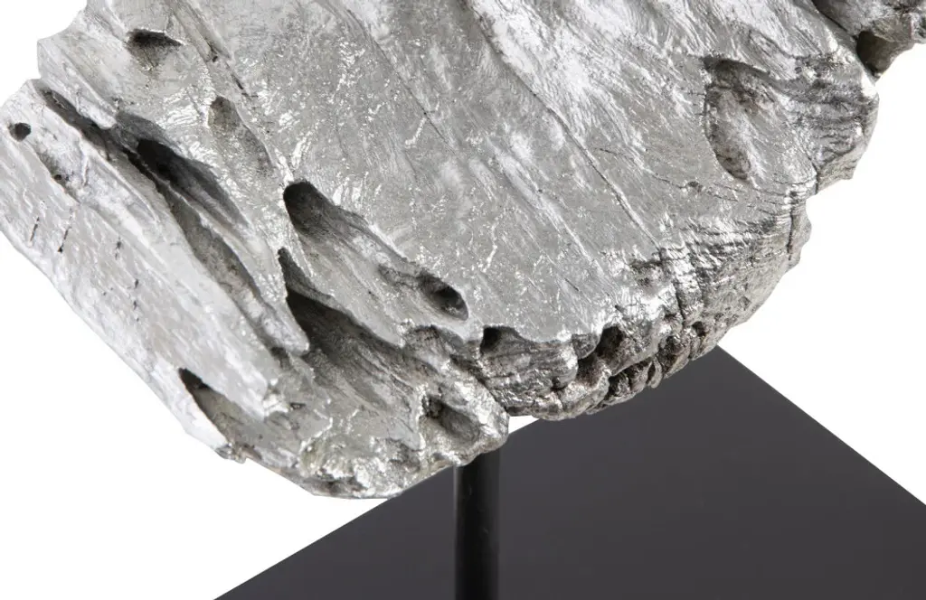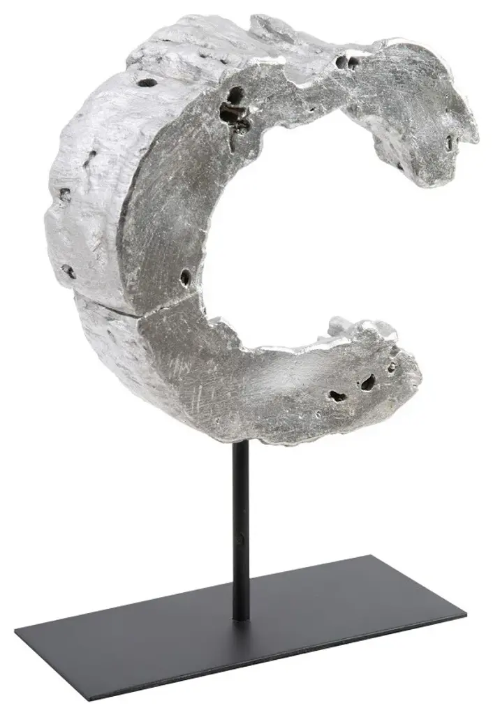 Bring an immediate sense of seriousness to a room with the Cast Eroded Wood Semi-Circle Sculpture. Though it is made of composite, it imitates a relic so convincingly, it could have been pulled from the smoky ruins of a bygone volcano. The mix of silver leaf and black finishes help amplify this ruse, which reflects the ethos that Phillips Collection personifies: modern organic. We offer a similar shape in this collection of table sculptures and several wall tiles, as well.
