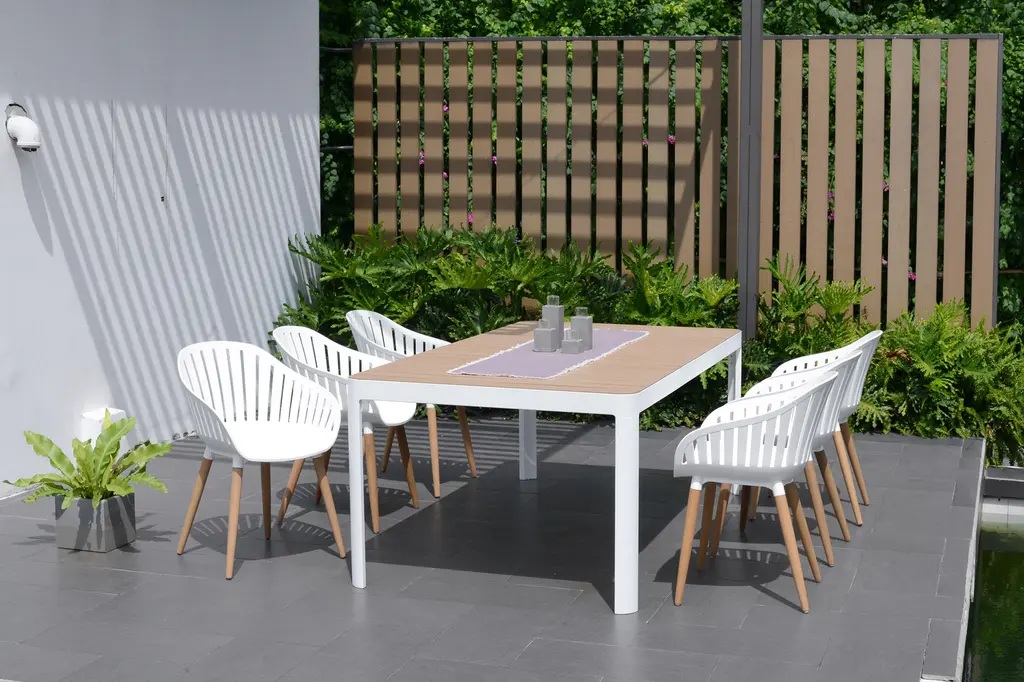 Cayana 7-pc Rectangular Outdoor Teak/aluminum Dining Set, White/natural