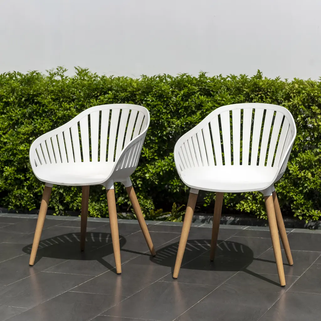 Introducing the Cayana Dining Set, a perfect blend of elegance and functionality for your outdoor space. Crafted with die-cast aluminum, this set offers stability and robustness while remaining lightweight and easy to move. The environmentally friendly Duracoat® powder coating ensures durability and a sleek finish. The table top, made of solid wood, is 100% FSC certified, providing exceptional outdoor performance with high weather resistance and low maintenance. The chairs, constructed from high-quality Duresin®, are designed to be hard-wearing, recyclable, and low-maintenance, with legs crafted from FSC-certified Eucalyptus wood. This sustainable choice supports forests and ecosystems worldwide. Enjoy the ease of assembly with a manual guide included, making the Cayana Dining Set a delightful addition to your outdoor living area.