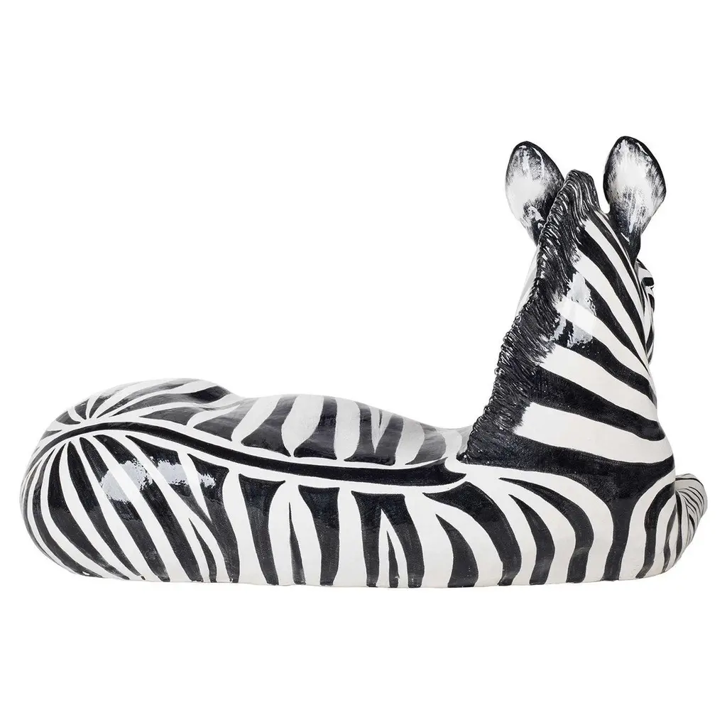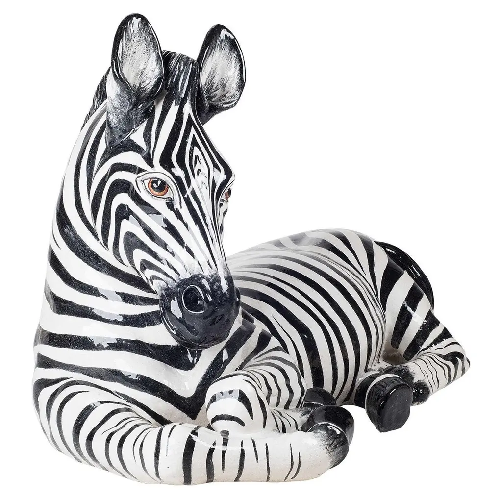 An African safari in the comfort of one’s home comes that much closer with this ceramic zebra statuette. The animal – at rest with its front legs crossed in a playful manner – is completely hand-decorated in black and white enamel and is an ideal piece for any contemporary, modern or Art Deco setting.