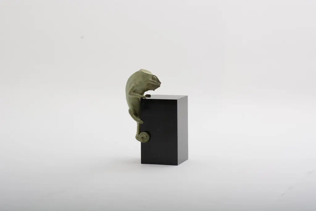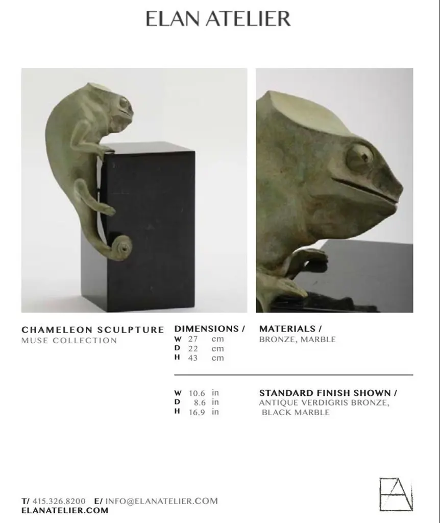 Chameleon Sculpture In Cast Bronze In Verdigris Finish By Elan Atelier
