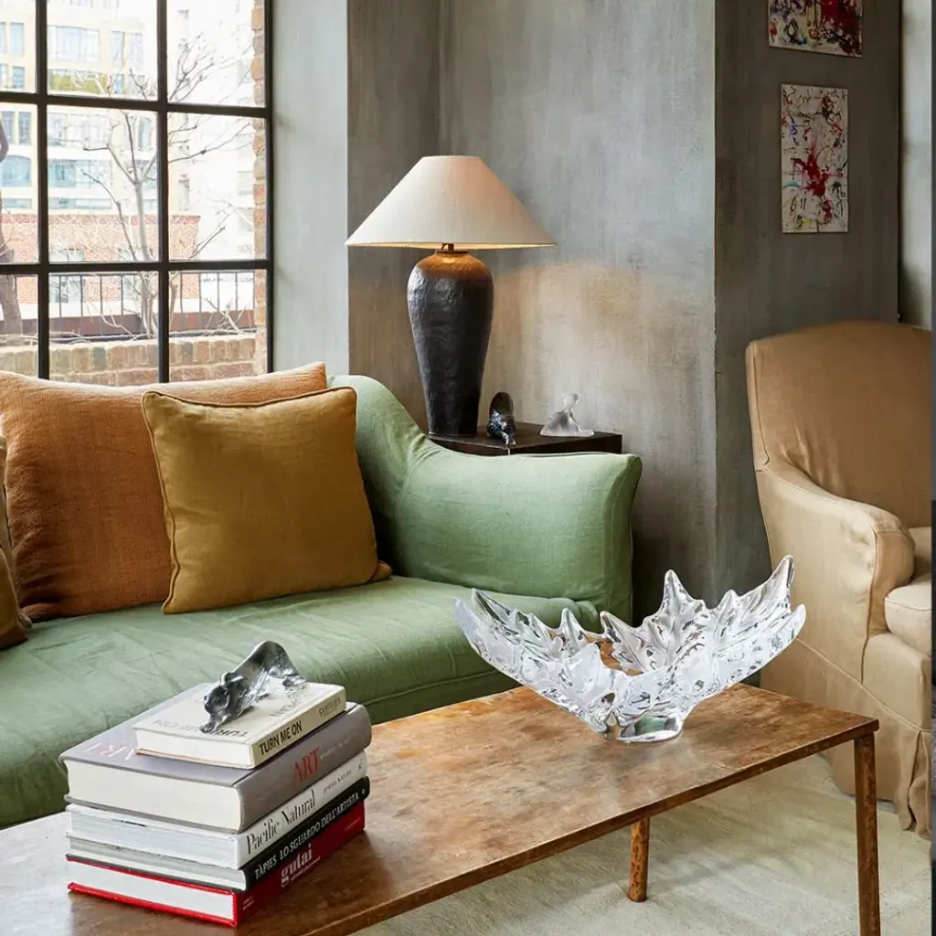 The spectacular rows of plane trees lining “the most beautiful Avenue of the World” inspired the design of the finely engraved crystal leaves that adorn the Champs-Elysées bowl, designed by Marc Lalique in 1951. This sculpture of light and crystal captures the very essence of Paris. This iconic artwork is now issued in a grand and small version. One of the grand versions is transformed by the manufacturing technique of double gathering. Trained as a jeweler at the Ecole des Arts Decoratifs in Paris in the late 1880's, Rene Lalique gained recognition as an independent designer for some of the era's great jewelry houses including Cartier and Boucheron. Eventually, he turned to glassmaking, and his techniques were a triumph for the Art Deco movement. Every piece of Lalique is finely detailed and produced by hand in Alsace, France.