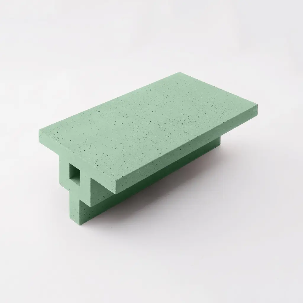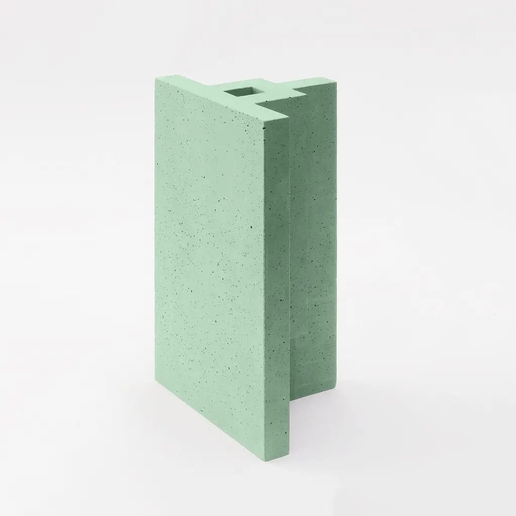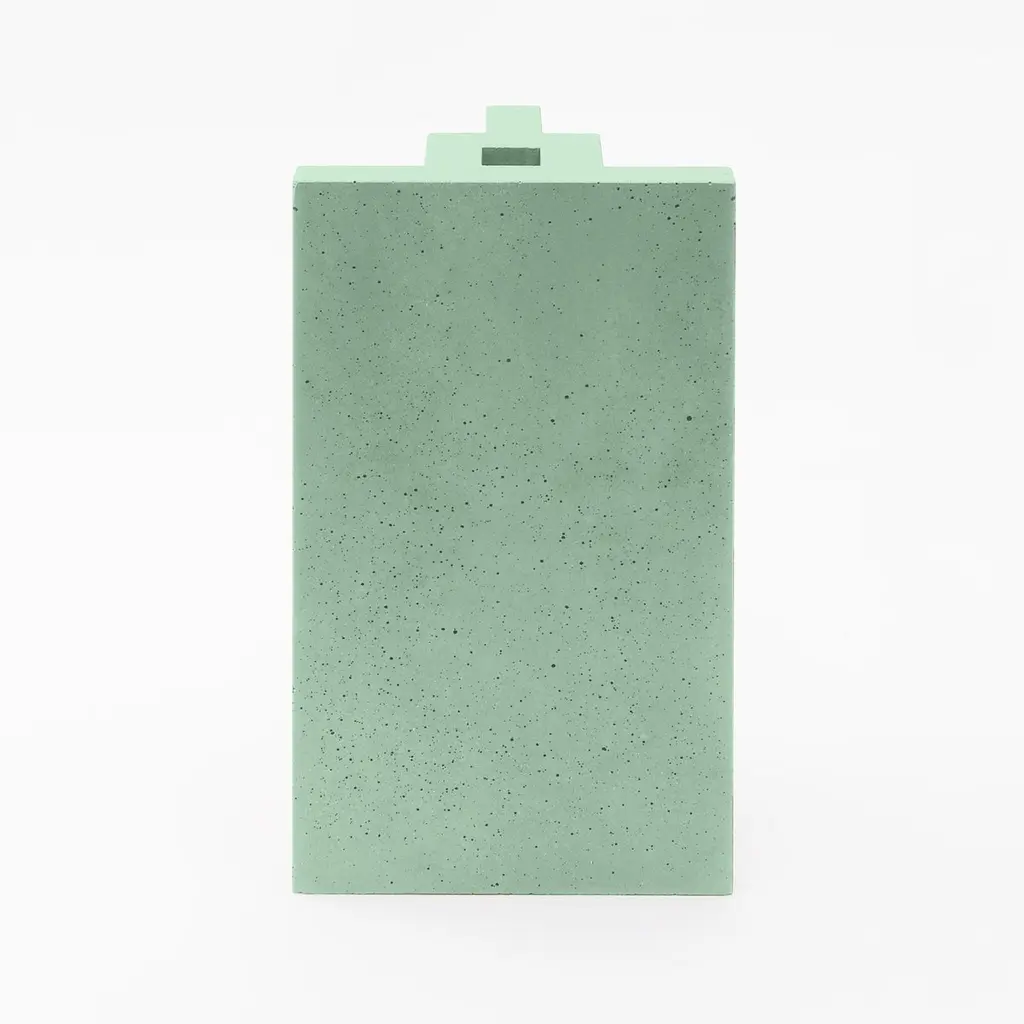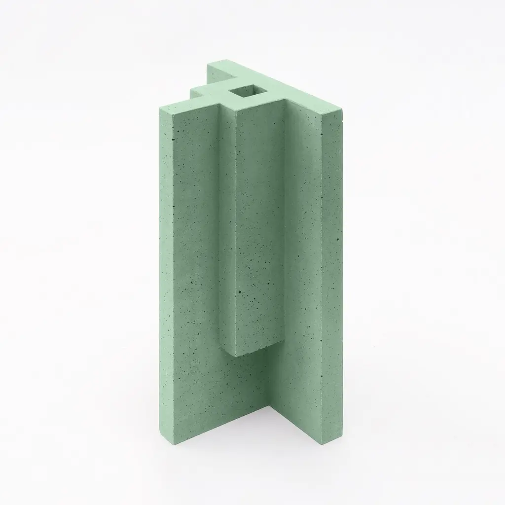 Chandigarh I - Mint Green - Design Sculpture Paolo Giordano Cement CastChandigarh is a collection of sculptures inspired by the homonym city designed by Le Corbusier, who imagined and created it from nothing in India. The sculptures are made of exposed concrete, coloured with oxides that give the material pastel and chalky tones, each shade can mark the thicknesses emphasizing the contours. These small architectures can be used as vases, but also left bare as they are. Simple signs like an imaginary alphabet. Evocative structures revealing a world of improbable geometries.Edition of 200 pieces x model numbered and signedDesigned by Paolo Giordano.Made in Italy.Abstract sculpture has a geometric shape and hard lines, handmade in concrete or cement in Italy, suitable for home, showrooms or hotels.