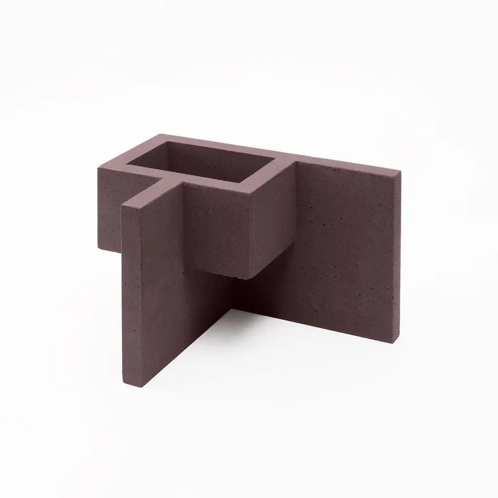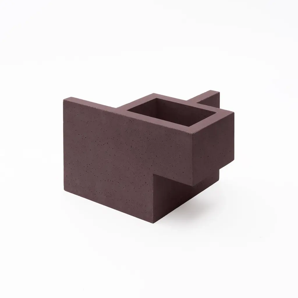 Chandigarh II - Marsala Brown - Design Sculpture Paolo Giordano Cement CastChandigarh is a collection of sculptures inspired by the homonym city designed by Le Corbusier, who imagined and created it from nothing in India. The sculptures are made of exposed concrete, coloured with oxides that give the material pastel and chalky tones, each shade can mark the thicknesses emphasizing the contours. These small architectures can be used as vases, but also left bare as they are. Simple signs like an imaginary alphabet. Evocative structures revealing a world of improbable geometries.Edition of 200 pieces x model numbered and signedDesigned by Paolo Giordano.Made in Italy.Abstract sculpture has a geometric shape and hard lines, handmade in concrete or cement in Italy, suitable for home, showrooms or hotels.