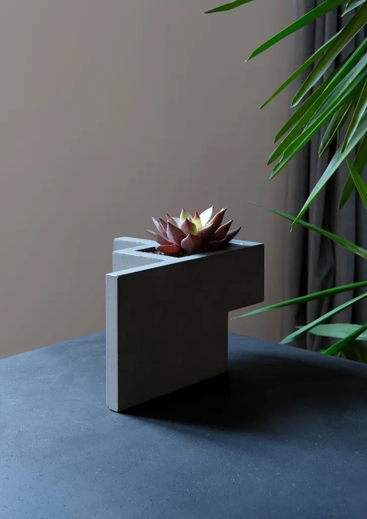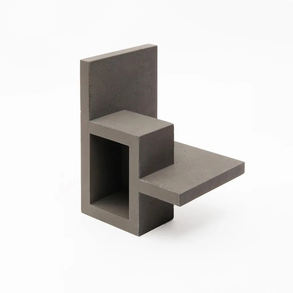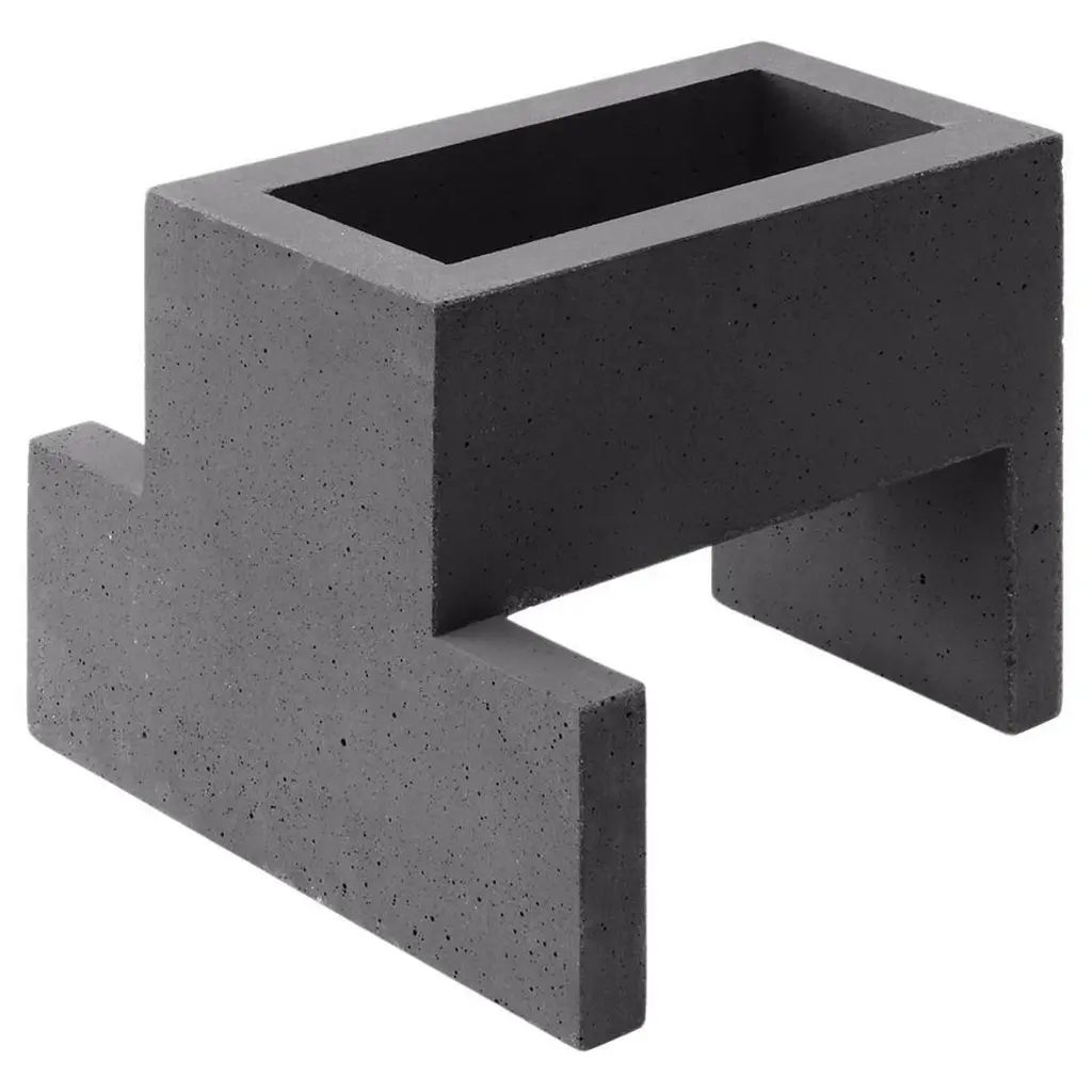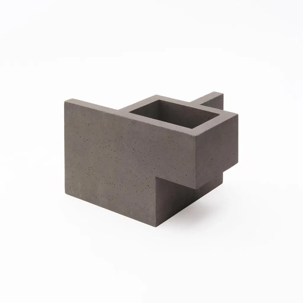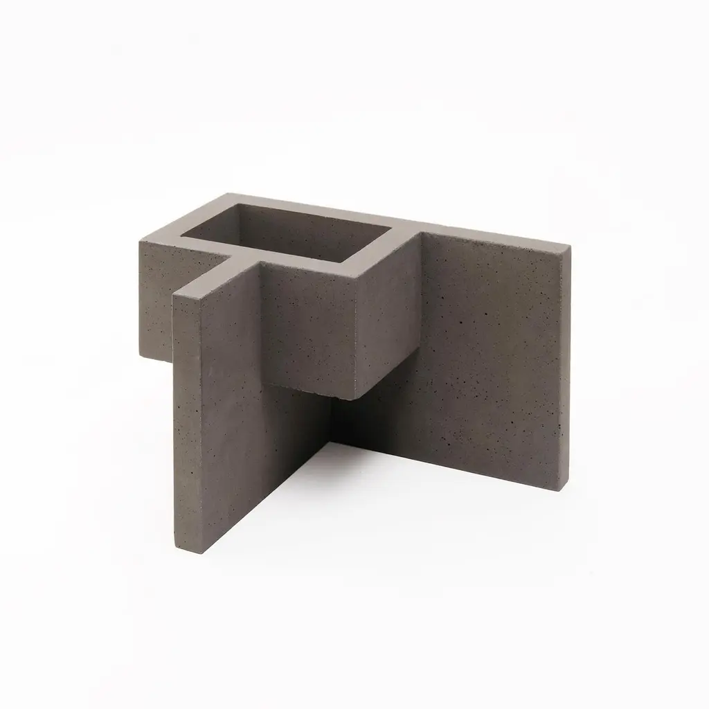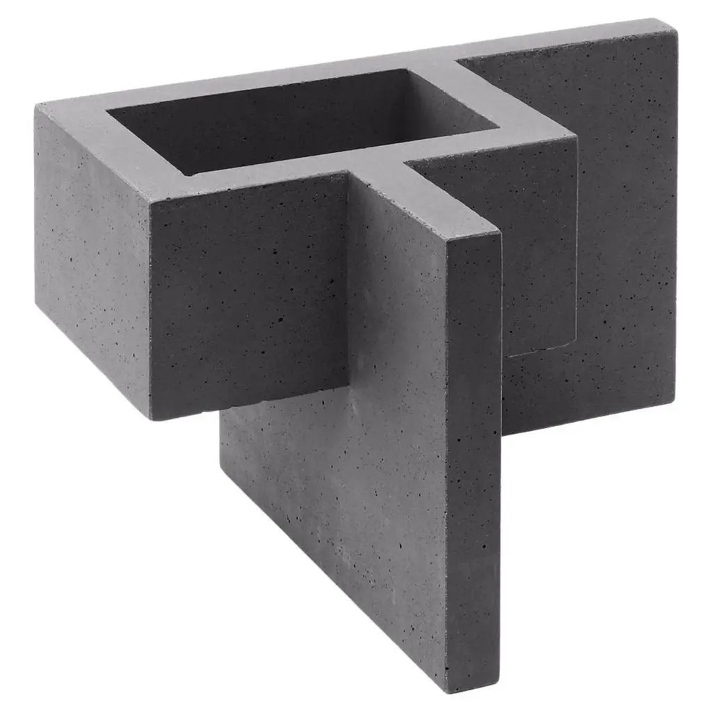 Chandigarh II - Dark Grey - Design Sculpture Paolo Giordano Cement CastChandigarh is a collection of sculptures inspired by the homonym city designed by Le Corbusier, who imagined and created it from nothing in India. The sculptures are made of exposed concrete, coloured with oxides that give the material pastel and chalky tones, each shade can mark the thicknesses emphasizing the contours. These small architectures can be used as vases, but also left bare as they are. Simple signs like an imaginary alphabet. Evocative structures revealing a world of improbable geometries.Edition of 200 pieces x model numbered and signedDesigned by Paolo Giordano.Made in Italy.Abstract sculpture has a geometric shape and hard lines, handmade in concrete or cement in Italy, suitable for home, showrooms or hotels.